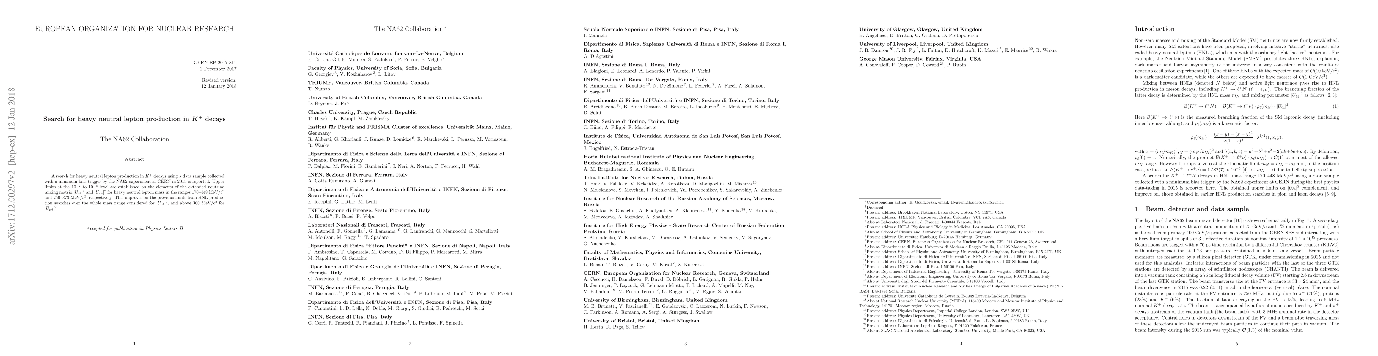 The NA62 experiment at CERN searched for heavy neutral leptons in $K^+$ decays, establishing upper limits on the extended neutrino mixing matrix elements at the $10^{-7}$ to $10^{-6}$ level for masses between 170 and 448 MeV/c². This work improves previous results and extends the mass range.