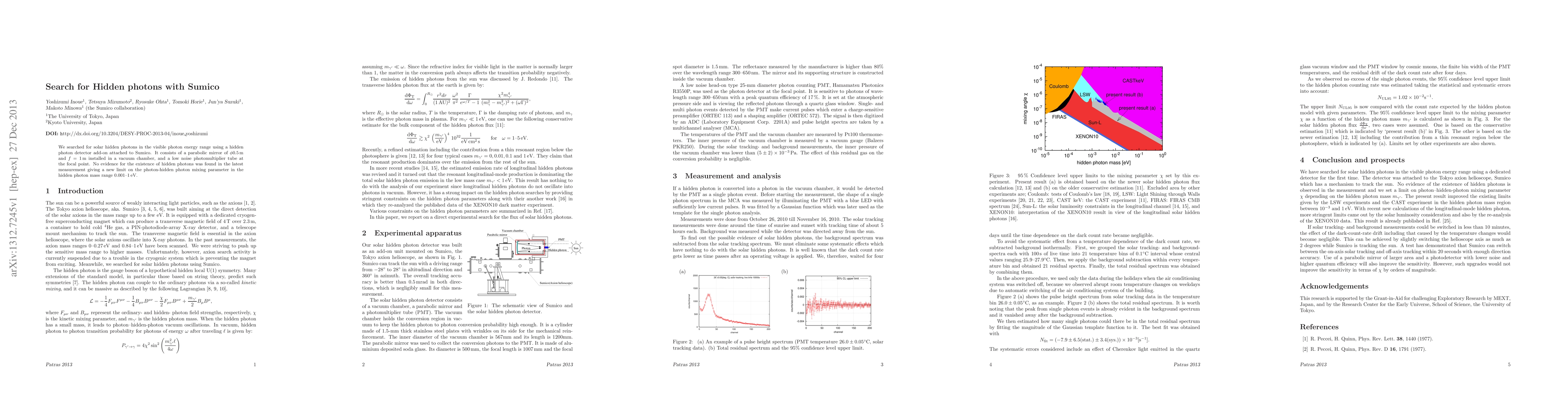 Scientists at Sumico searched for hidden photons using a specialized detector, but found no evidence of their existence, setting a new limit on the photon-hidden photon mixing parameter.
