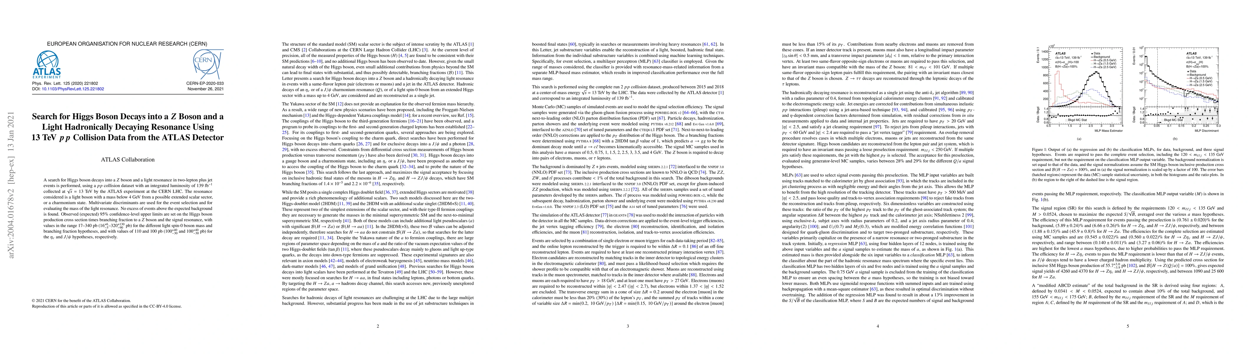 A search for Higgs boson decays into a $Z$ boson and a light resonance in two-lepton plus jet events is performed, using a $pp$ collision dataset with an integrated luminosity of 139 fb$^{-1}$ collected at $\sqrt{s}=13$ TeV by the ATLAS experiment at the CERN LHC. The resonance considered is a light boson with a mass below 4 GeV from a possible extended scalar sector, or a charmonium state. Multivariate discriminants are used for the event selection and for evaluating the mass of the light resonance. No excess of events above the expected background is found. Observed (expected) 95$\% $ confidence-level upper limits are set on the Higgs boson production cross section times branching fraction to a $Z$ boson and the signal resonance, with values in the range 17 pb to 340 pb ($16^{+6}_{-5}$ pb to $320^{+130}_{-90}$ pb) for the different light spin-0 boson mass and branching fraction hypotheses, and with values of 110 pb and 100 pb ($100^{+40}_{-30}$ pb and $100^{+40}_{-30}$ pb) for the $\eta_c$ and $J/\psi$ hypotheses, respectively.