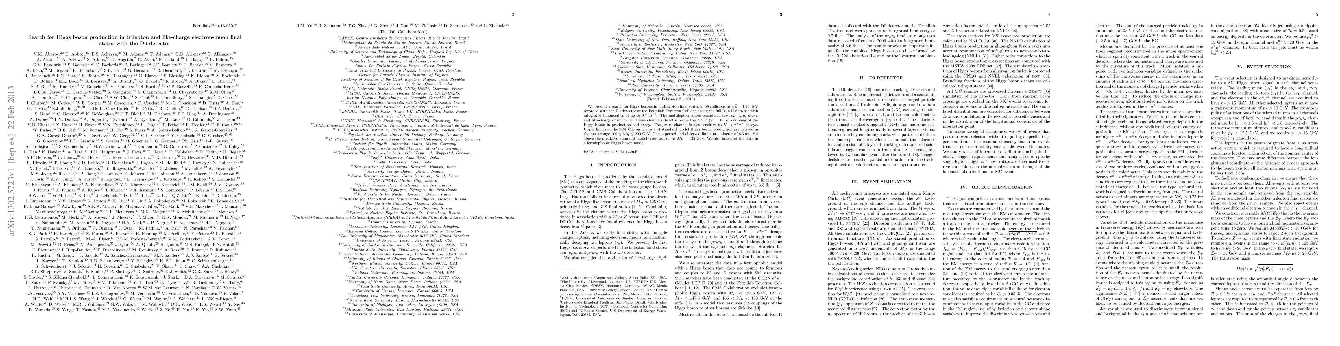 This paper reports a search for Higgs bosons in trilepton and like-charge electron-muon final states using the D0 detector at the Tevatron Collider, finding no evidence for Higgs boson production in the mass range 100-200 GeV, and deriving upper limits on its production rate. The results are interpreted within both standard model and fermiophobic Higgs scenarios.