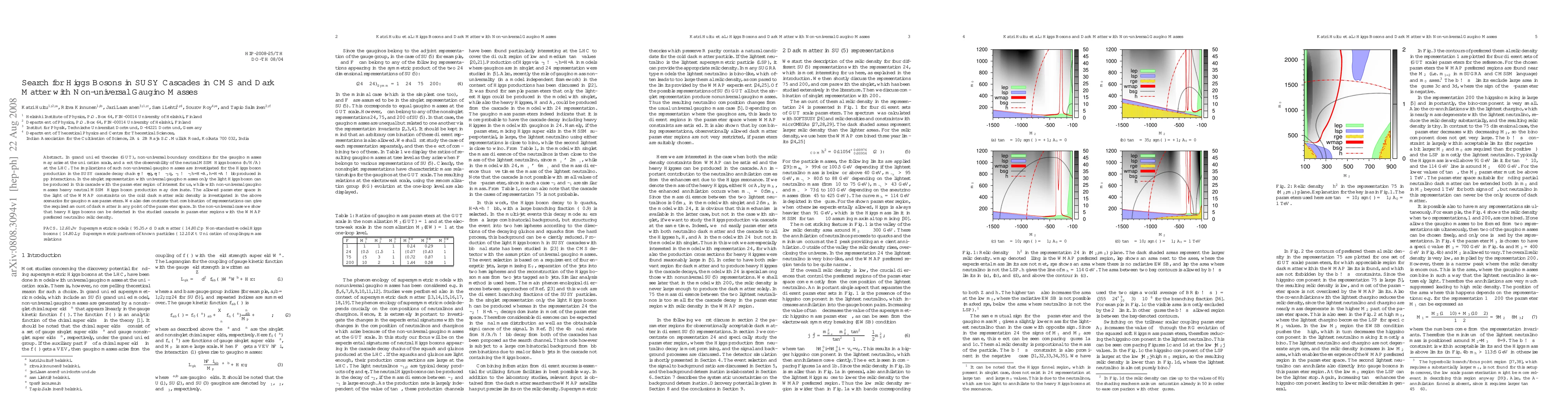In grand unified theories (GUT), non-universal boundary conditions for the gaugino masses may arise at the unification scale, and affect the observability of the neutral MSSM Higgs bosons (h/H/A) at the LHC. The implications of such non-universal gaugino masses are investigated for the Higgs boson production in the SUSY cascade decay chain gluino --> squark quark, squark --> neutralino_2 quark, neutralino_2 --> neutralino_1 h/H/A, h/H/A --> b b-bar produced in pp interactions. In the singlet representation with universal gaugino masses only the light Higgs boson can be produced in this cascade with the parameter region of interest for us, while with non-universal gaugino masses heavy neutral MSSM Higgs boson production may dominate. The allowed parameter space in the light of the WMAP constraints on the cold dark matter relic density is investigated in the above scenarios for gaugino mass parameters. We also demonstrate that combination of representations can give the required amount of dark matter in any point of the parameter space. In the non-universal case we show that heavy Higgs bosons can be detected in the studied cascade in parameter regions with the WMAP preferred neutralino relic density.