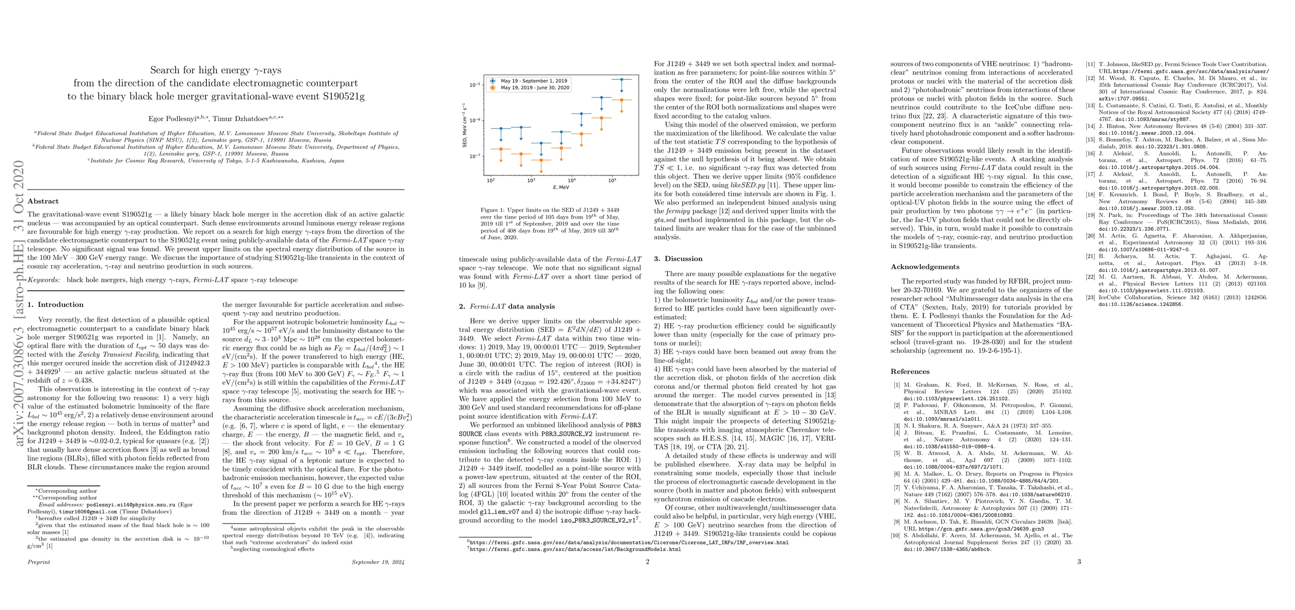 A search for high-energy gamma-rays from a binary black hole merger event detected no significant signal, setting upper limits on the source's spectral energy distribution in the 100 MeV - 300 GeV range.