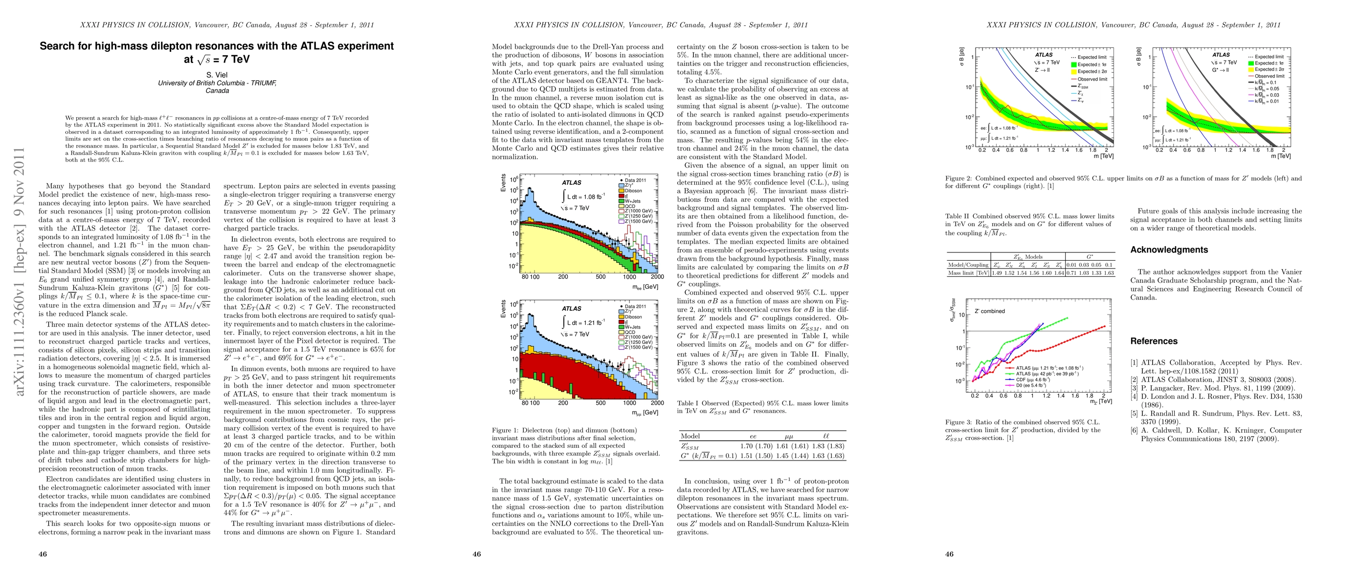 This paper reports a search for high-mass dilepton resonances in proton-proton collisions at 7 TeV using the ATLAS experiment, finding no significant excess over Standard Model predictions. It sets upper limits on the cross-section for hypothetical resonances, excluding a Sequential Standard Model Z' below 1.83 TeV and a Randall-Sundrum graviton below 1.63 TeV at 95% confidence level.