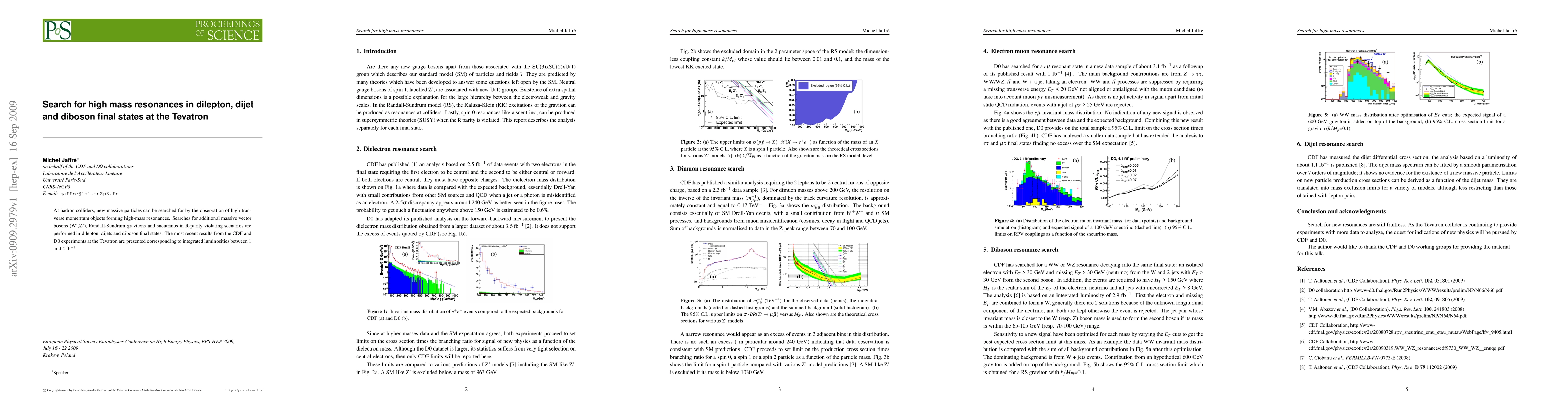 This paper reports on searches for new massive particles like W', Z', Randall-Sundrum gravitons, and sneutrinos in dilepton, dijet, and diboson final states using data from the CDF and D0 experiments at the Tevatron, corresponding to integrated luminosities of 1 to 4 fb^{-1}. No significant deviations from the Standard Model are observed.