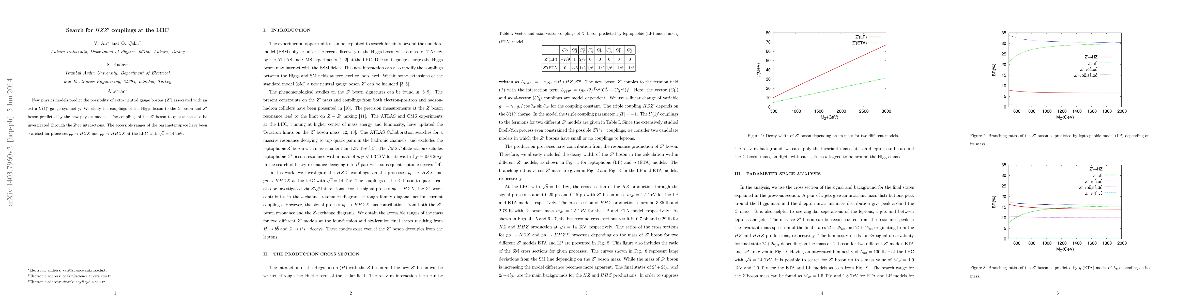 New physics models predict the possibility of extra neutral gauge bosons ($Z'$) associated with an extra $U(1)'$ gauge symmetry. We study the couplings of the Higgs boson to the $Z$ boson and $Z'$ boson predicted by the new physics models. The couplings of the $Z'$ boson to quarks can also be investigated through the $Z'q\bar{q}$ interactions. The accessible ranges of the parameter space have been searched for processes $pp\rightarrow HZX$ and $pp\rightarrow HHZX$ at the LHC with $\sqrt{s}=14$ TeV.