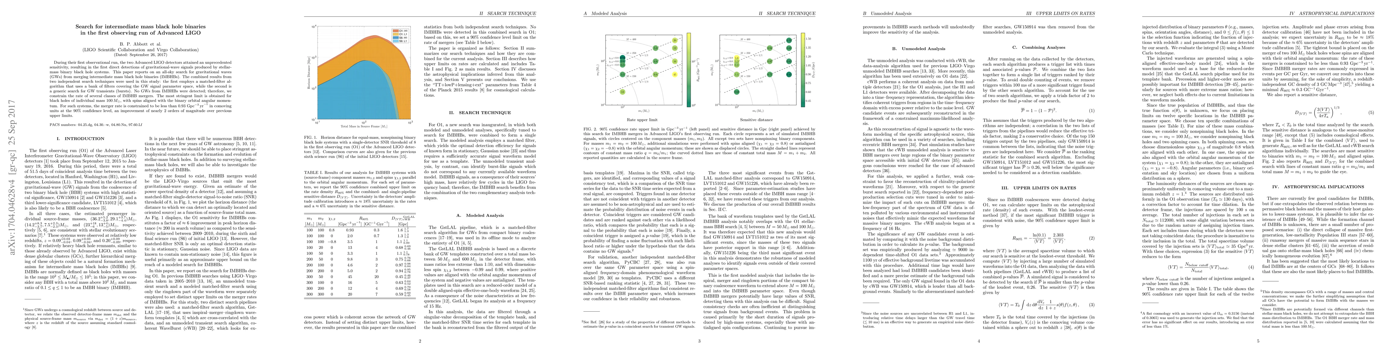 During their first observational run, the two Advanced LIGO detectors attained an unprecedented sensitivity, resulting in the first direct detections of gravitational-wave signals and GW151226, produced by stellar-mass binary black hole systems. This paper reports on an all-sky search for gravitational waves (GWs) from merging intermediate mass black hole binaries (IMBHBs). The combined results from two independent search techniques were used in this study: the first employs a matched-filter algorithm that uses a bank of filters covering the GW signal parameter space, while the second is a generic search for GW transients (bursts). No GWs from IMBHBs were detected, therefore, we constrain the rate of several classes of IMBHB mergers. The most stringent limit is obtained for black holes of individual mass $100\,M_\odot$, with spins aligned with the binary orbital angular momentum. For such systems, the merger rate is constrained to be less than $0.93~\mathrm{Gpc^{-3}\,yr}^{-1}$ in comoving units at the $90\%$ confidence level, an improvement of nearly 2 orders of magnitude over previous upper limits.
