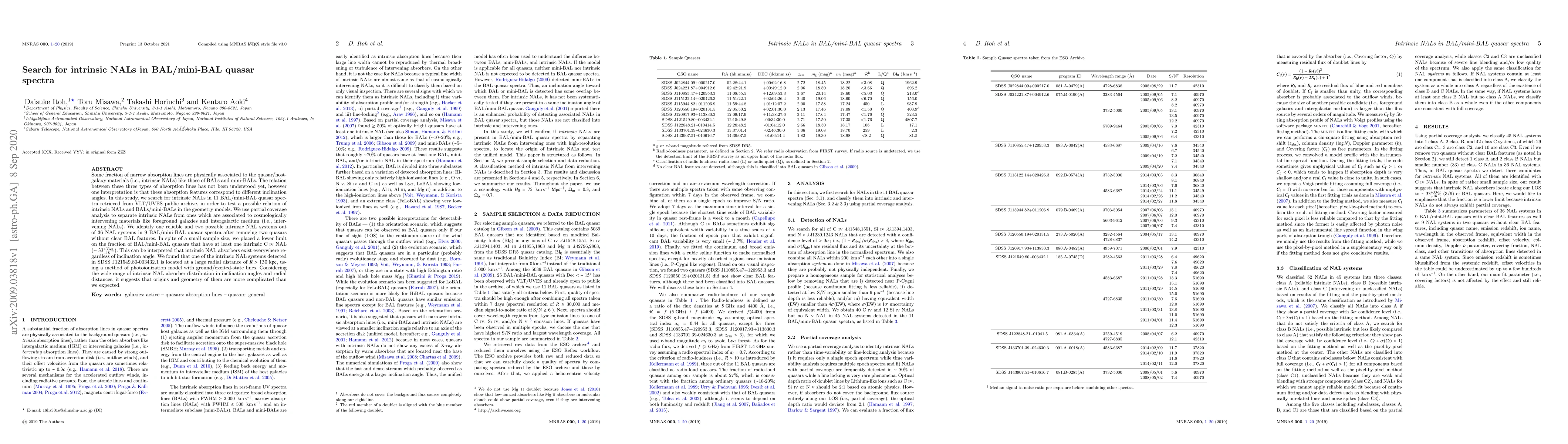 This study investigates intrinsic narrow absorption lines (NALs) in BAL/mini-BAL quasar spectra to understand their relation to quasar/host-galaxy materials. The research identifies one reliable and two possible intrinsic NAL systems, suggesting that intrinsic NAL absorbers exist irrespective of inclination angles, and indicating a complex origin and geometry.