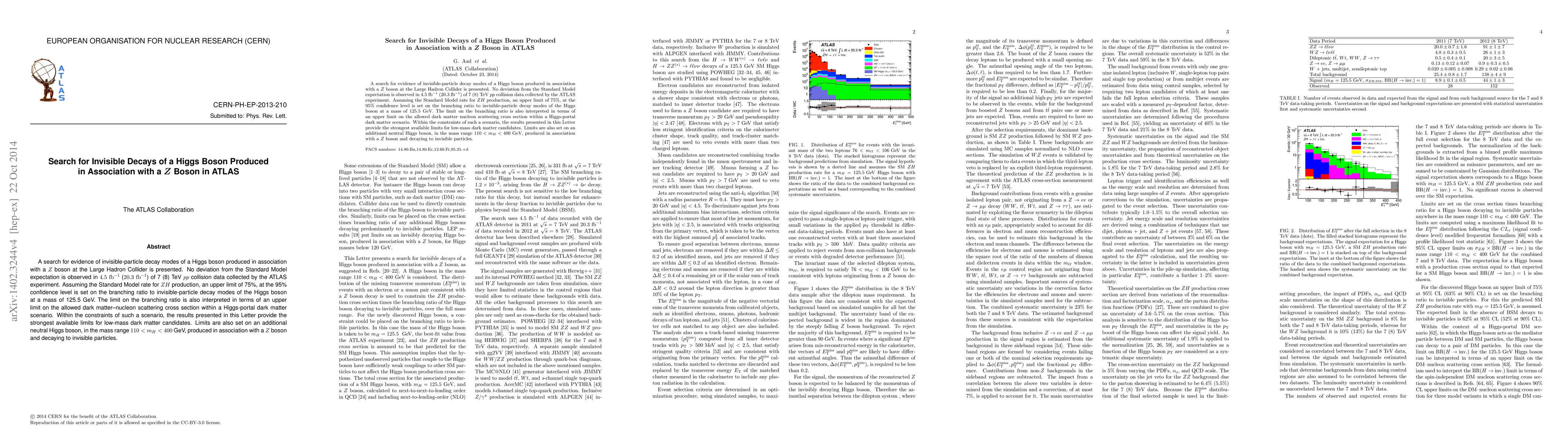 ATLAS experiment. Assuming the Standard Model rate for ZH production, an upper