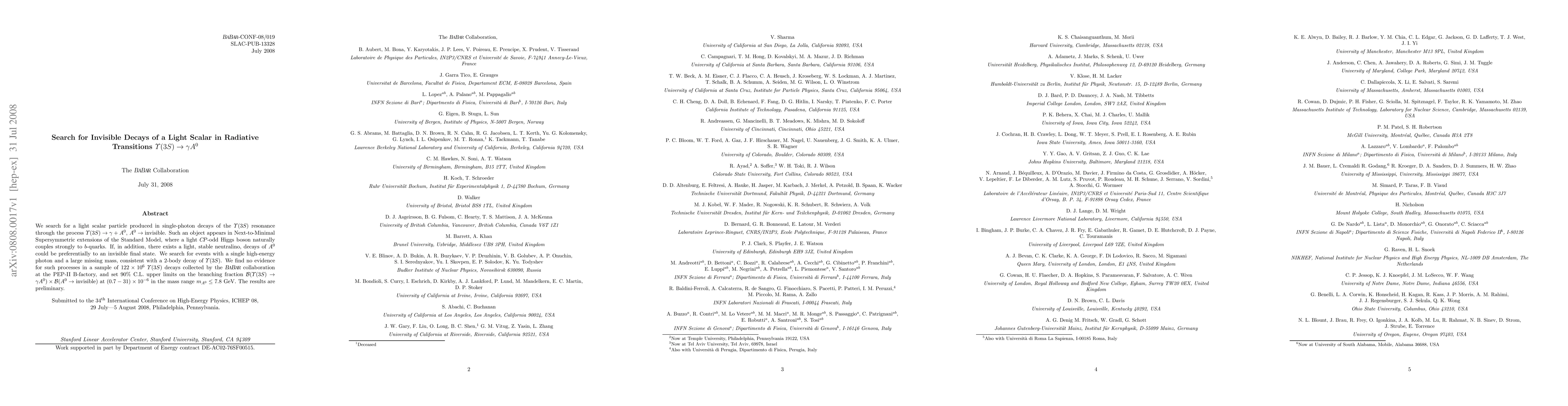 We search for a light scalar particle produced in single-photon decays of the Upsilon(3S) resonance through the process Upsilon(3S) -> gamma A0, A0 -> invisible. Such an object appears in Next-to-Minimal Supersymmetric extensions of the Standard Model, where a light CP-odd Higgs boson naturally couples strongly to b-quarks. If, in addition, there exists a light, stable neutralino, decays of A0 could be preferentially to an invisible final state. We search for events with a single high-energy photon and a large missing mass, consistent with a 2-body decay of Upsilon(3S). We find no evidence for such processes in a sample of 122*10^6 Upsilon(3S) decays collected by the BABAR collaboration at the PEP-II B-factory, and set 90% C.L. upper limits on the branching fraction B(Upsilon(3S) -> gamma A0)*B(A0 -> invisible) at (0.7-31)*10^{-6} in the mass range m(A0)<=7.8 GeV. The results are preliminary.