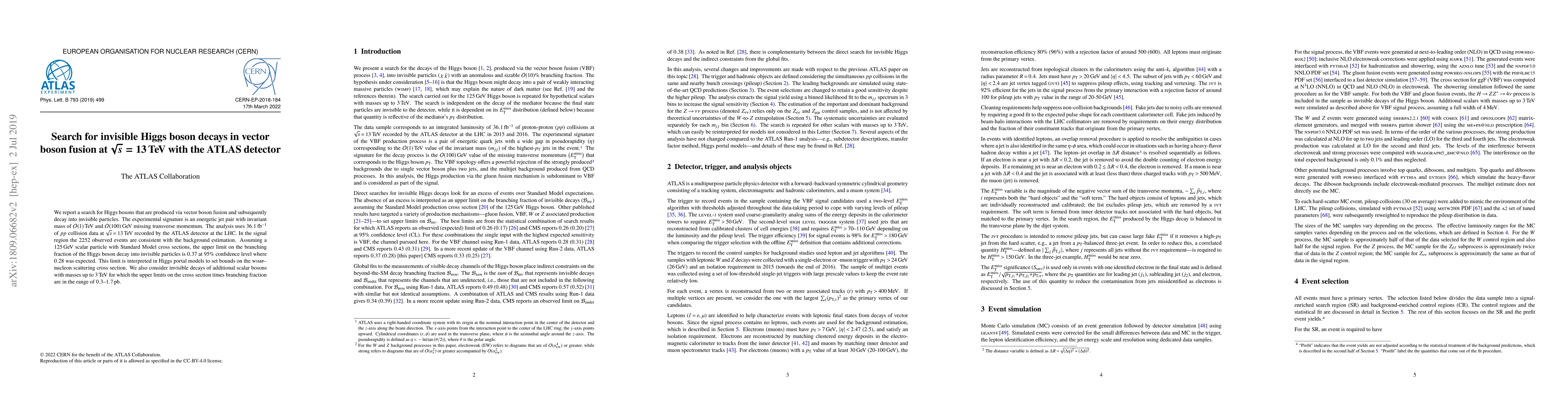 This paper reports a search for Higgs boson decays into invisible particles using vector boson fusion at the LHC's ATLAS detector, finding no significant excess over background. The study sets an upper limit of 0.37 on the branching fraction for Higgs boson decays into invisible particles at 95% confidence level.