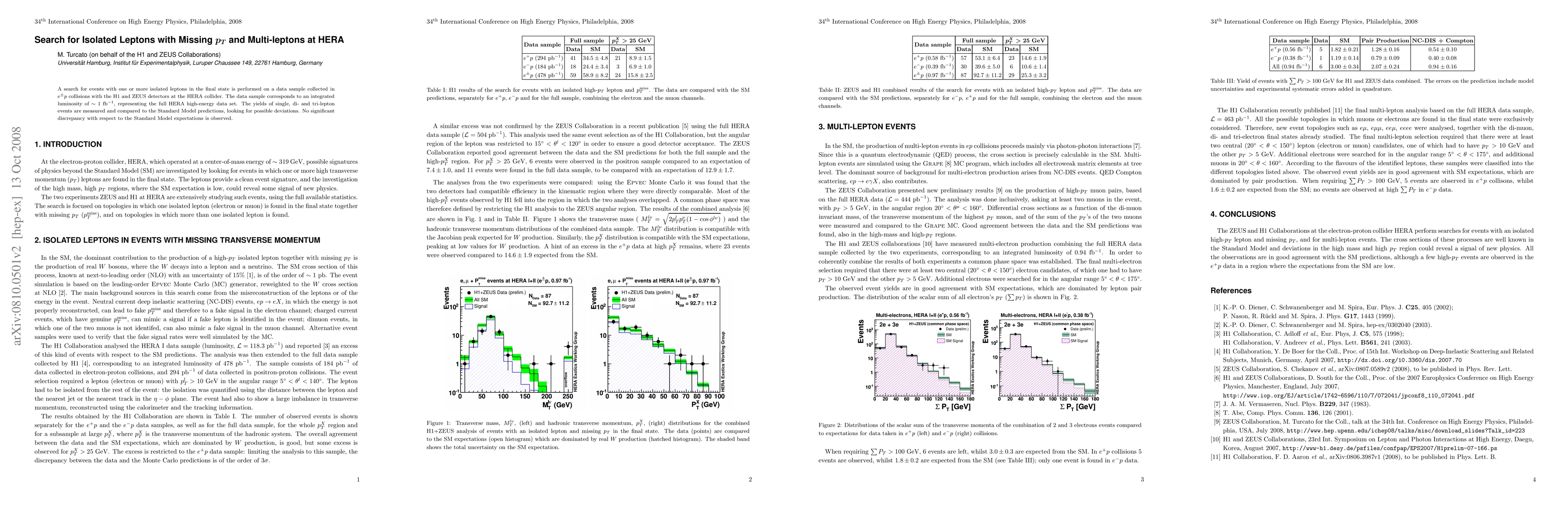 A search for isolated leptons in e+-p collisions at HERA found no significant deviations from Standard Model predictions, with measured yields of single, di-, and tri-lepton events matching the expected levels.