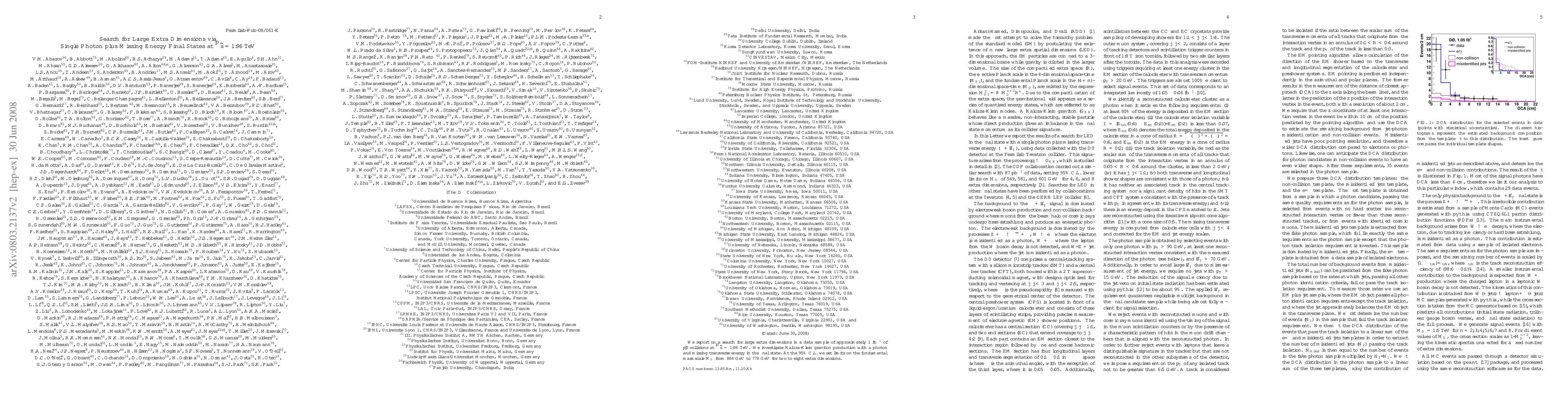 This study explores the possibility of large extra dimensions by examining photon plus missing energy events in proton-antiproton collisions at 1.96 TeV. The analysis sets limits on the fundamental mass scale M_{D}, excluding values below 884 GeV up to 778 GeV for scenarios with two to eight extra dimensions.