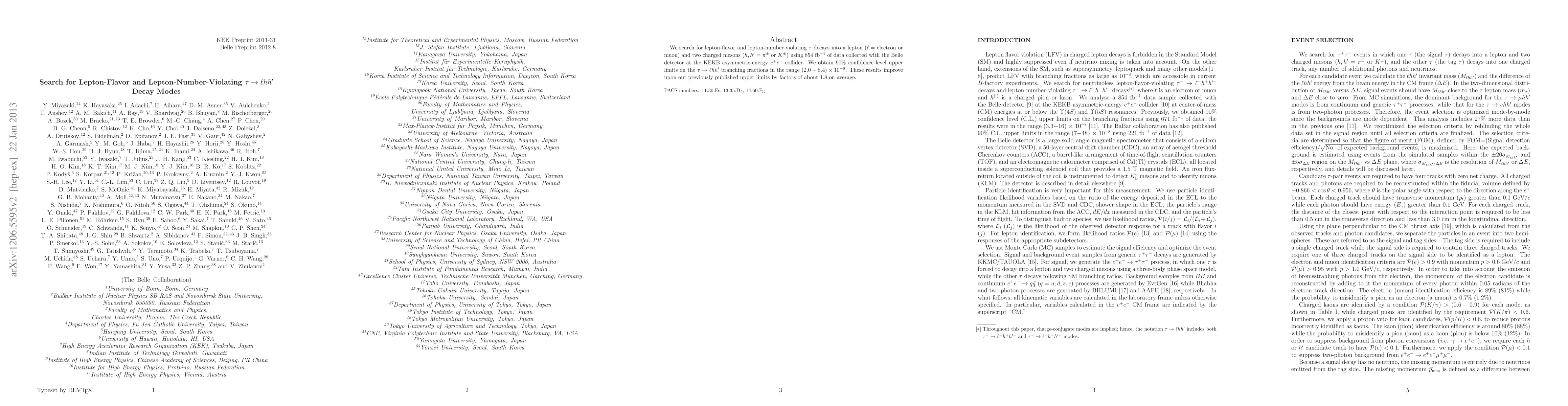 We search for lepton-flavor-violating and lepton-number-violating tau decays into a lepton (l = electron or muon) and two charged mesons (h, h' = pion or Kaon) using 854 fb^{-1} of data collected with the Belle detector at the KEKB asymmetric-energy e^+e^- collider. We obtain 90% confidence level upper limits on the tau to lhh' branching fractions in the range (2.0-8.4)*10^{-8}. These results improve upon our previously published upper limits by factors of about 1.8 on average.