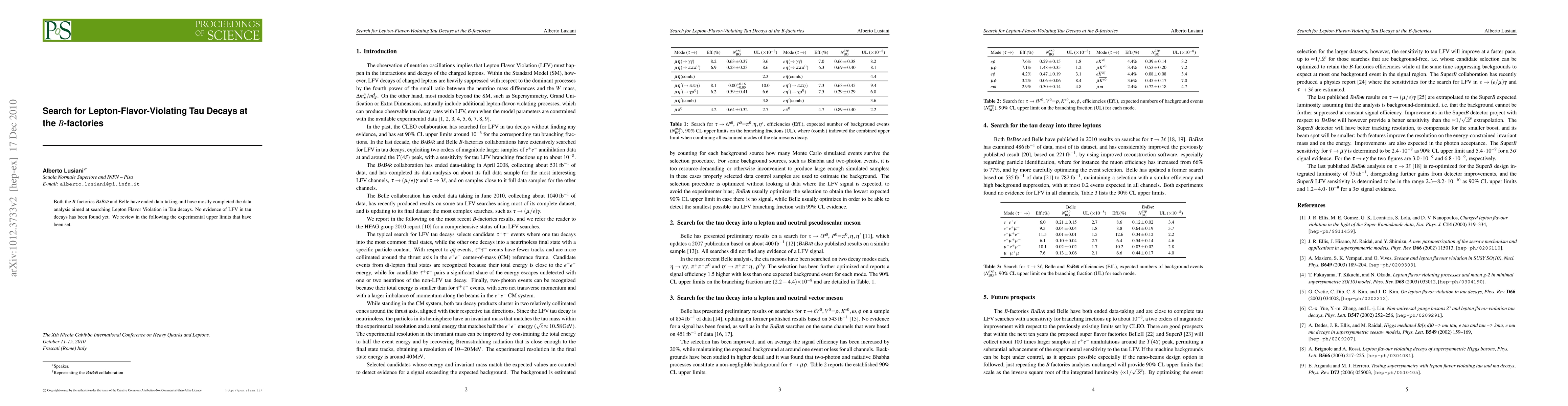 Both the B-factories BaBar and Belle have ended data-taking and have mostly completed the data analysis aimed at searching Lepton Flavor Violation in Tau decays. No evidence of LFV in tau decays has been found yet. We review in the following the experimental upper limits that have been set.