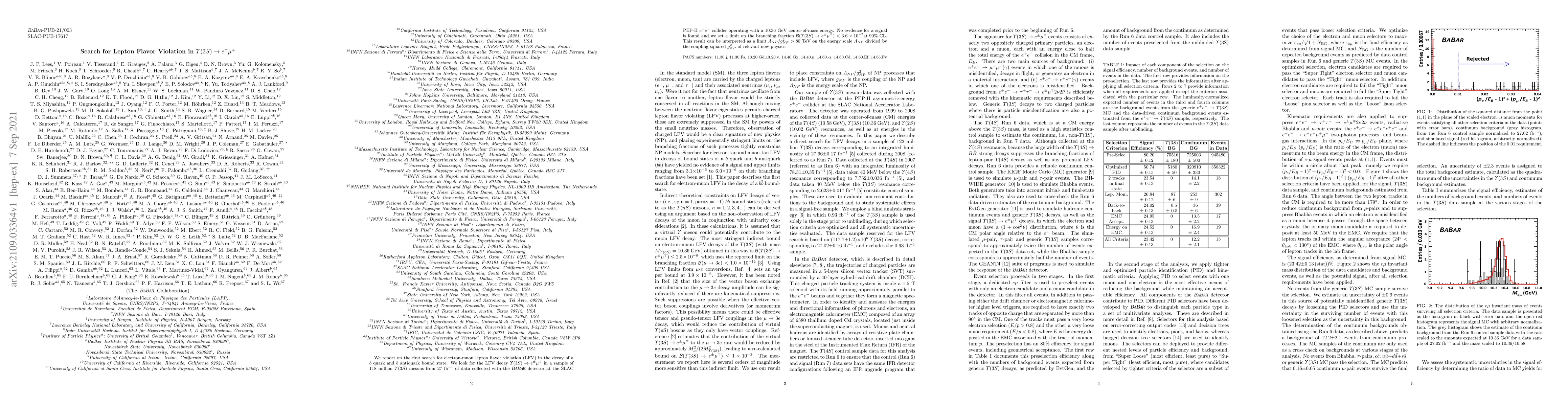 This study reports the first search for electron-muon lepton flavor violation in the decay of $\Upsilon (3S)$ mesons, finding no evidence for the decay $\Upsilon (3S)\rightarrow e^{\pm}\mu^{\mp}$. The result sets a branching fraction limit of $\mathcal{B}(\Upsilon(3S)\rightarrow e^{\pm}\mu^{\mp})<3.6\times10^{-7}$ at 90% CL, implying a constraint on new physics beyond the Standard Model.