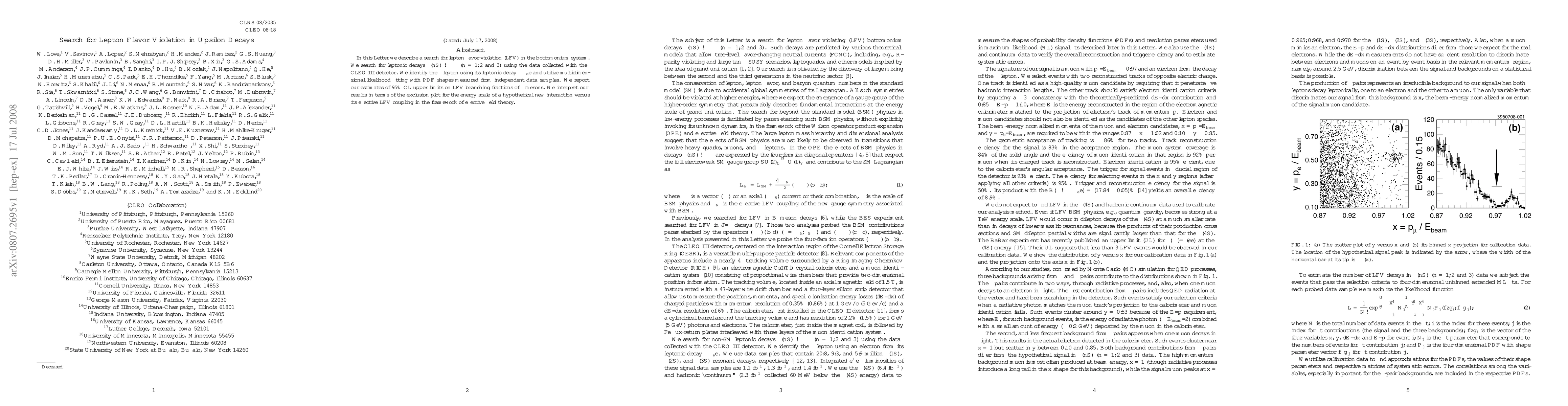 The paper presents a detailed methodology for searching LFV in Upsilon decays, including event selection, background estimation, and multidimensional likelihood fitting techniques.
