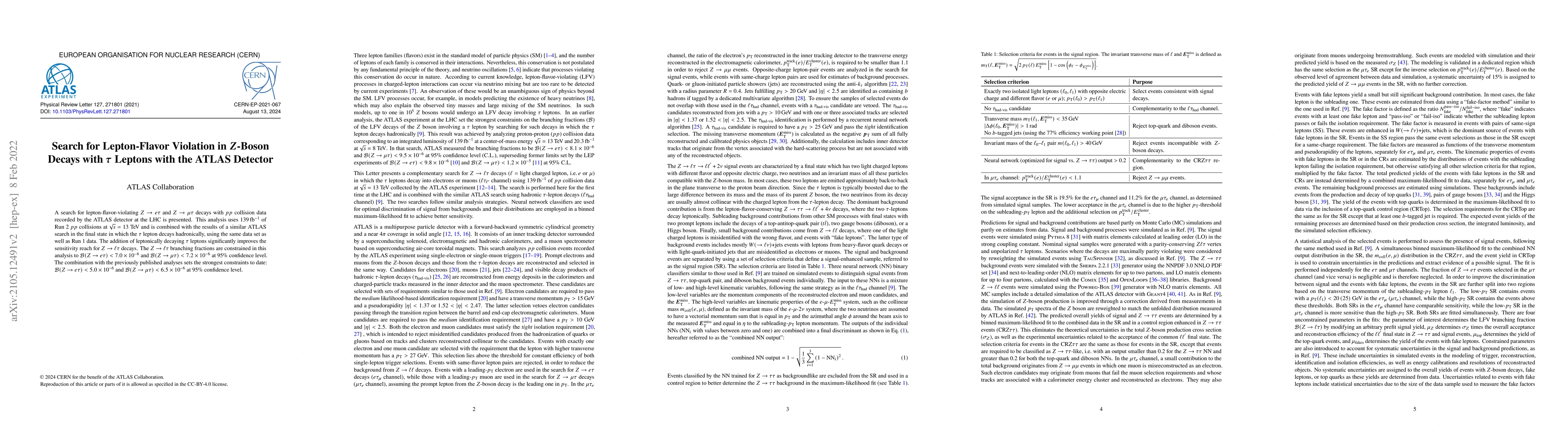 A search for lepton-flavor-violating $Z\to e\tau$ and $Z\to\mu\tau$ decays with $pp$ collision data recorded by the ATLAS detector at the LHC is presented. This analysis uses 139 fb$^{-1}$ of Run 2 $pp$ collisions at $\sqrt{s}=13$ TeV and is combined with the results of a similar ATLAS search in the final state in which the $\tau$-lepton decays hadronically, using the same data set as well as Run 1 data. The addition of leptonically decaying $\tau$-leptons significantly improves the sensitivity reach for $Z\to\ell\tau$ decays. The $Z\to\ell\tau$ branching fractions are constrained in this analysis to $\mathcal{B}(Z\to e\tau)<7.0\times10^{-6}$ and $\mathcal{B}(Z\to \mu\tau)<7.2\times10^{-6}$ at 95% confidence level. The combination with the previously published analyses sets the strongest constraints to date: $\mathcal{B}(Z\to e\tau)<5.0\times10^{-6}$ and $\mathcal{B}(Z\to \mu\tau)<6.5\times10^{-6}$ at 95% confidence level.