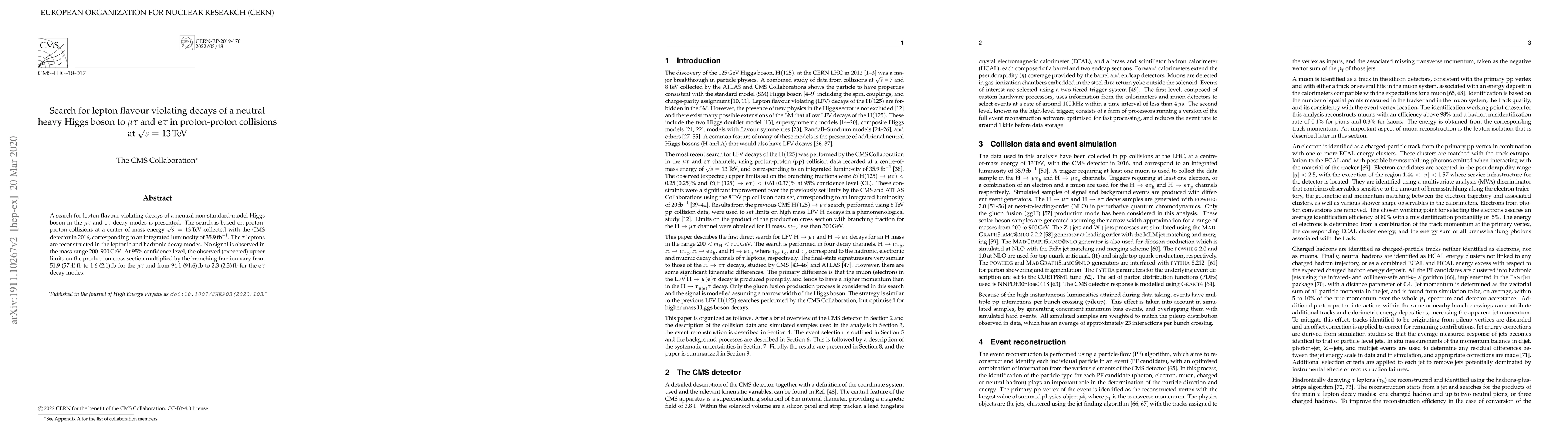 This paper reports a search for lepton flavour violating decays of a neutral Higgs boson to $\mu\tau$ and e$\tau$ in proton-proton collisions at 13 TeV using the CMS detector. No signal was observed, setting upper limits on the production cross section for these decay modes.