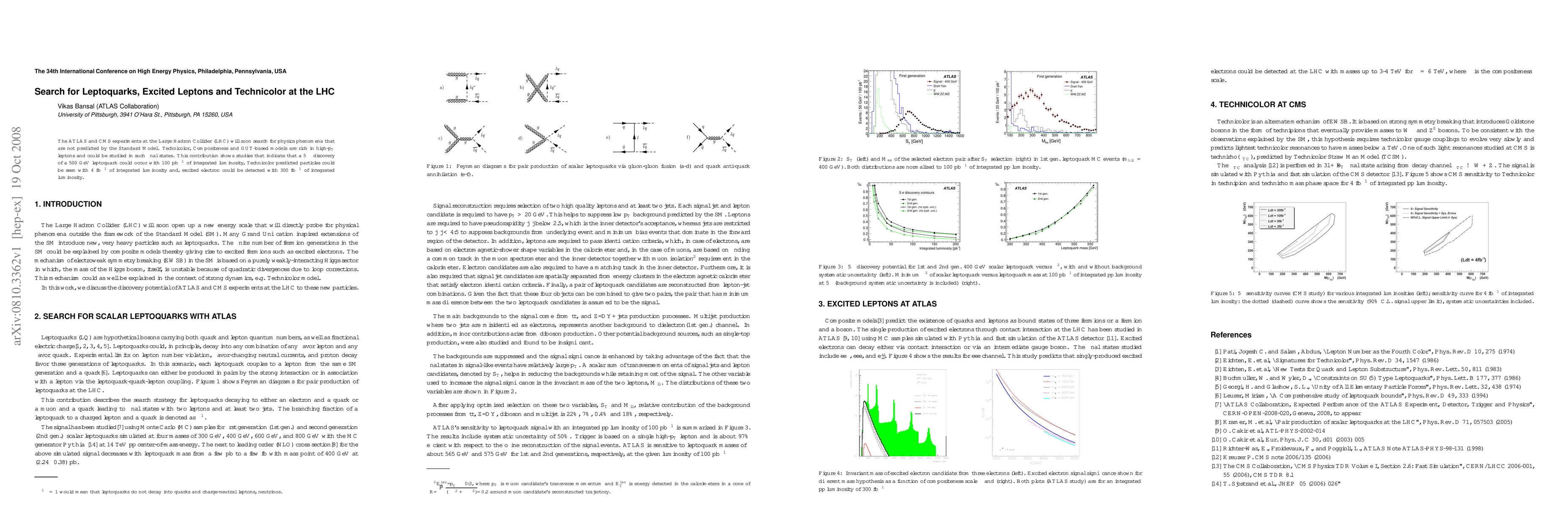 This paper explores the potential for the ATLAS and CMS experiments at the LHC to discover new physics beyond the Standard Model, including leptoquarks, Technicolor particles, and excited leptons. It predicts a 5σ discovery of a 500 GeV leptoquark with 100 pb^-1, Technicolor particles with 4 fb^-1, and excited electrons with 300 fb^-1 of integrated luminosity.
