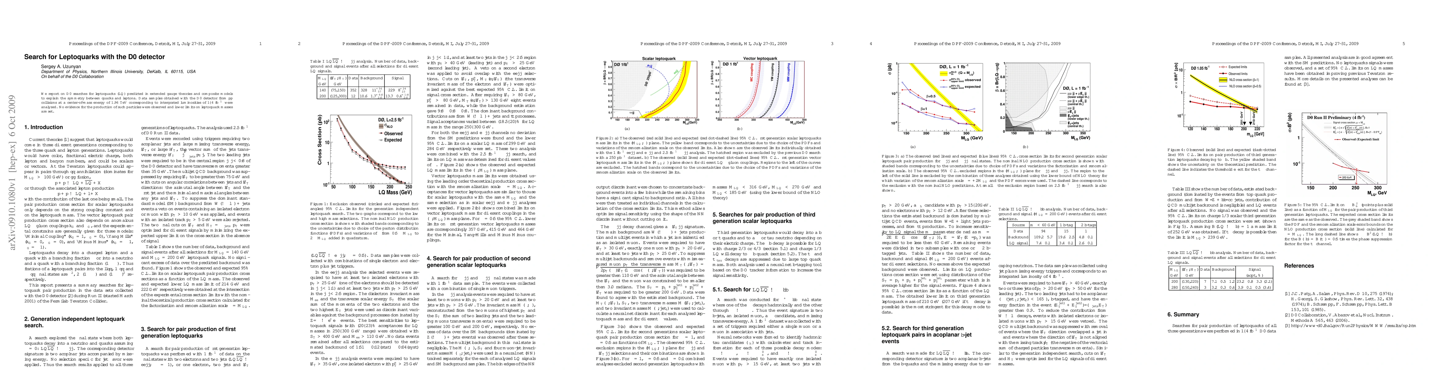 The D0 detector analyzed proton-antiproton collision data at 1.96 TeV with no evidence of leptoquark production, establishing lower limits on their masses. These results constrain models predicting leptoquarks to explain quark-lepton symmetry.