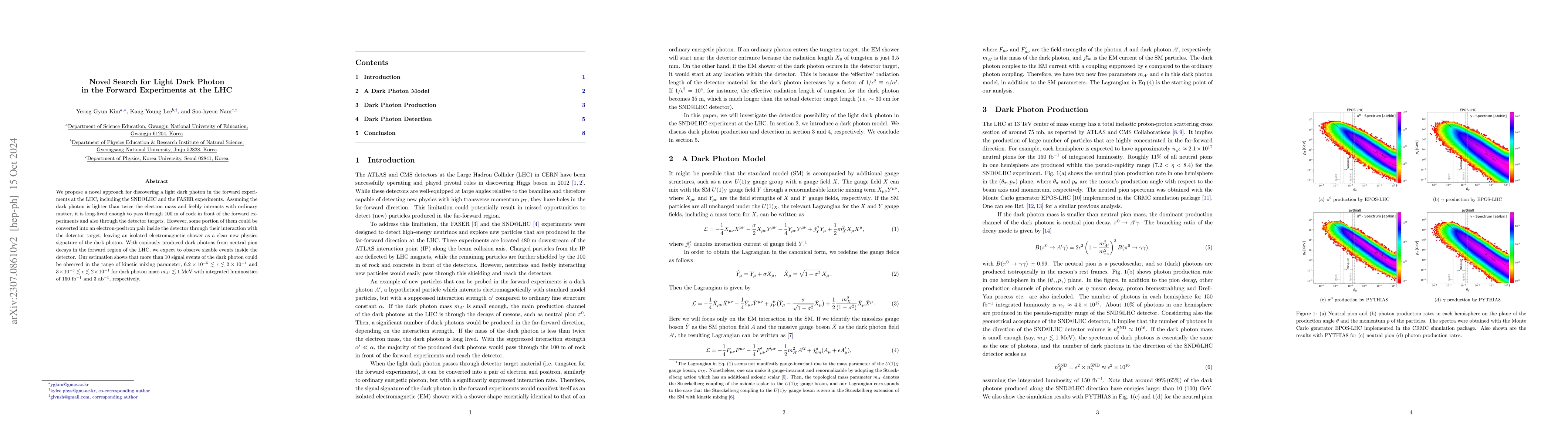 This paper explores the potential detection of light dark photons in forward LHC experiments like SND@LHC and FASER, focusing on dark photon masses below twice the electron mass. The study predicts that these dark photons could convert into electron-positron pairs within the detector, providing a distinctive signature for their presence.