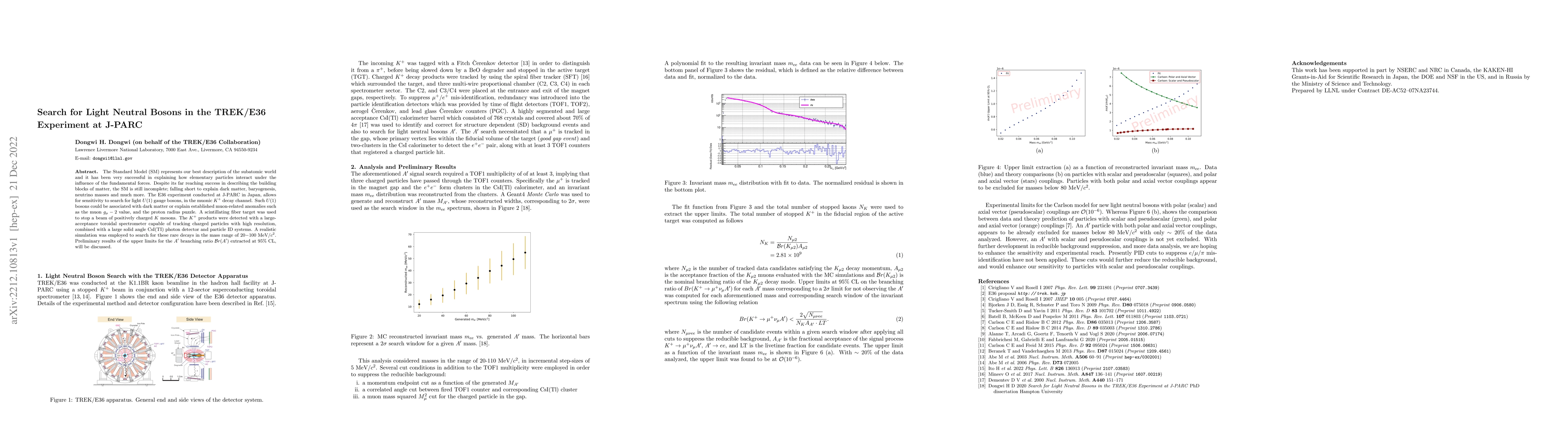 The Standard Model (SM) represents our best description of the subatomic world and it has been very successful in explaining how elementary particles interact under the influence of the fundamental forces. Despite its far reaching success in describing the building blocks of matter, the SM is still incomplete; falling short to explain dark matter, baryogenesis, neutrino masses and much more. The E36 experiment conducted at J-PARC in Japan, allows for sensitivity to search for light $U(1)$ gauge bosons, in the muonic $K^+$ decay channel. Such $U(1)$ bosons could be associated with dark matter or explain established muon-related anomalies such as the muon $g_{\mu}-2$ value, and the proton radius puzzle. A scintillating fiber target was used to stop a beam of positively charged $K$ mesons. The $K^+$ products were detected with a large-acceptance toroidal spectrometer capable of tracking charged particles with high resolution, combined with a large solid angle CsI(TI) photon detector and particle ID systems. A realistic simulation was employed to search for these rare decays in the mass range of 20$-$100 MeV/$c^2$. Preliminary results of the upper limits for the $A^\prime$ branching ratio $\mathcal{B}r(A^\prime)$ extracted at 95\% CL, will be discussed.