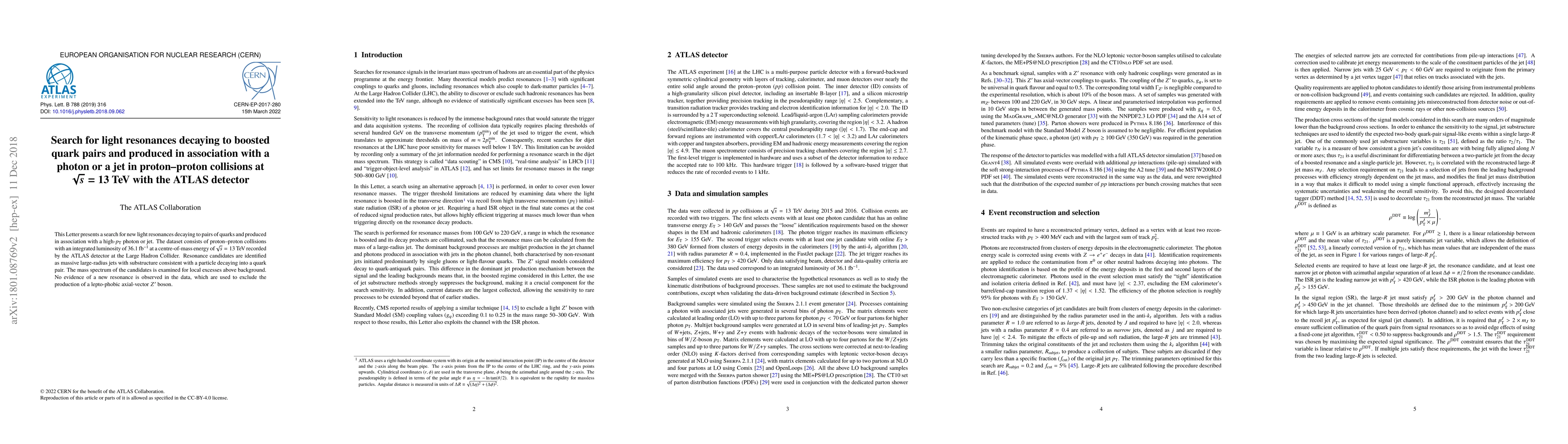 This Letter presents a search for new light resonances decaying to pairs of quarks and produced in association with a high-$p_{\textrm{T}}$ photon or jet. The dataset consists of proton-proton collisions with an integrated luminosity of 36.1 fb$^{-1}$ at a centre-of-mass energy of $\sqrt{s}=13$ TeV recorded by the ATLAS detector at the Large Hadron Collider. Resonance candidates are identified as massive large-radius jets with substructure consistent with a particle decaying into a quark pair. The mass spectrum of the candidates is examined for local excesses above background. No evidence of a new resonance is observed in the data, which are used to exclude the production of a lepto-phobic axial-vector $Z^\prime$ boson.