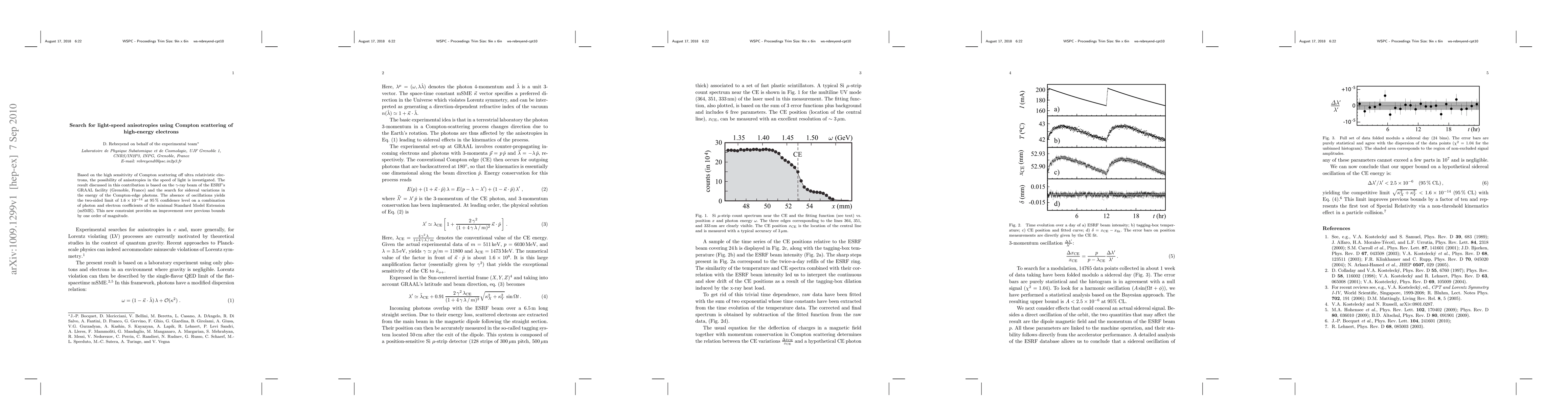 Based on the high sensitivity of Compton scattering off ultra relativistic electrons, the possibility of anisotropies in the speed of light is investigated. The result discussed in this contribution is based on the gamma-ray beam of the ESRF's GRAAL facility (Grenoble, France) and the search for sidereal variations in the energy of the Compton-edge photons. The absence of oscillations yields the two-sided limit of 1.6 x 10^{-14} at 95 % confidence level on a combination of photon and electron coefficients of the minimal Standard Model Extension (mSME). This new constraint provides an improvement over previous bounds by one order of magnitude.