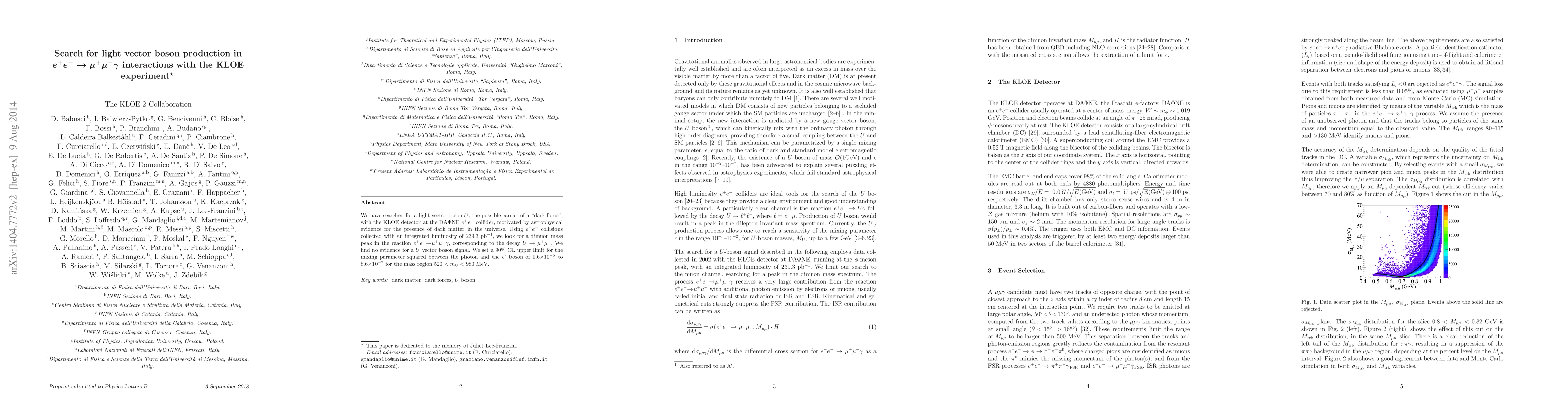 for a $U$ vector boson signal. We set a 90\% CL upper limit for the mixing