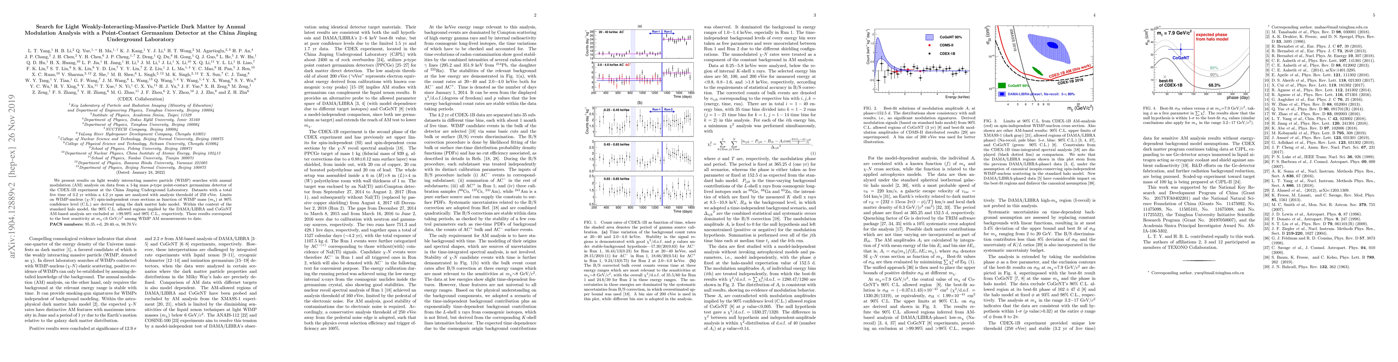 This paper reports on the search for light weakly interacting massive particle (WIMP) dark matter using annual modulation analysis with a 1-kg germanium detector in China Jinping Underground Laboratory. The study excludes the DAMA/LIBRA and CoGeNT AM-based results at high confidence levels and sets the best sensitivity limits for WIMPs below 6 GeV/c² to date.