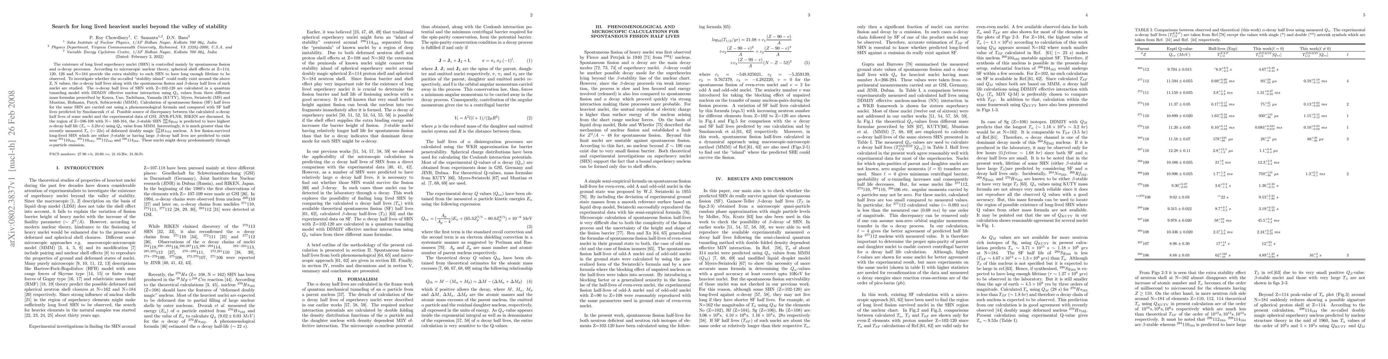 This paper investigates the existence of long-lived superheavy nuclei (SHN) beyond the valley of stability, focusing on $\alpha$-decay, spontaneous fission, and $\beta$-decay half lives. Calculations suggest a "stability island" around Z=114, 120, 126 and N=184, with $^{268}_{106}Sg_{162}$ predicted to have a notably long $\alpha$-decay half life of ~3.2 hours.