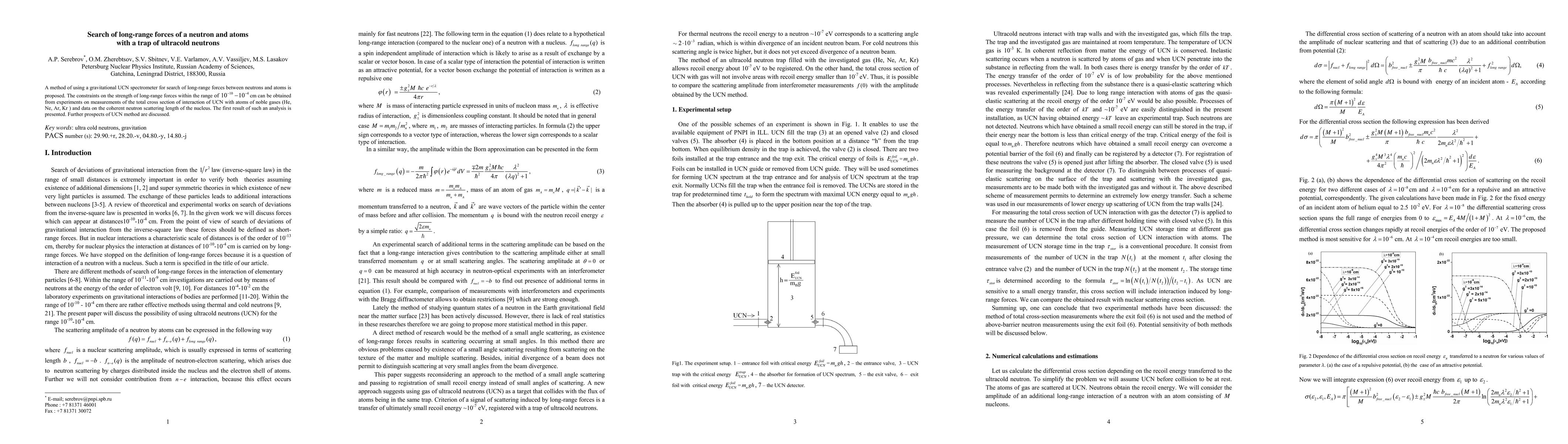 This paper proposes using a gravitational ultracold neutron (UCN) spectrometer to detect long-range forces between neutrons and atoms, presenting initial results from experiments measuring UCN interactions with noble gases. The study discusses potential future applications of the UCN method in constraining long-range force strengths.
