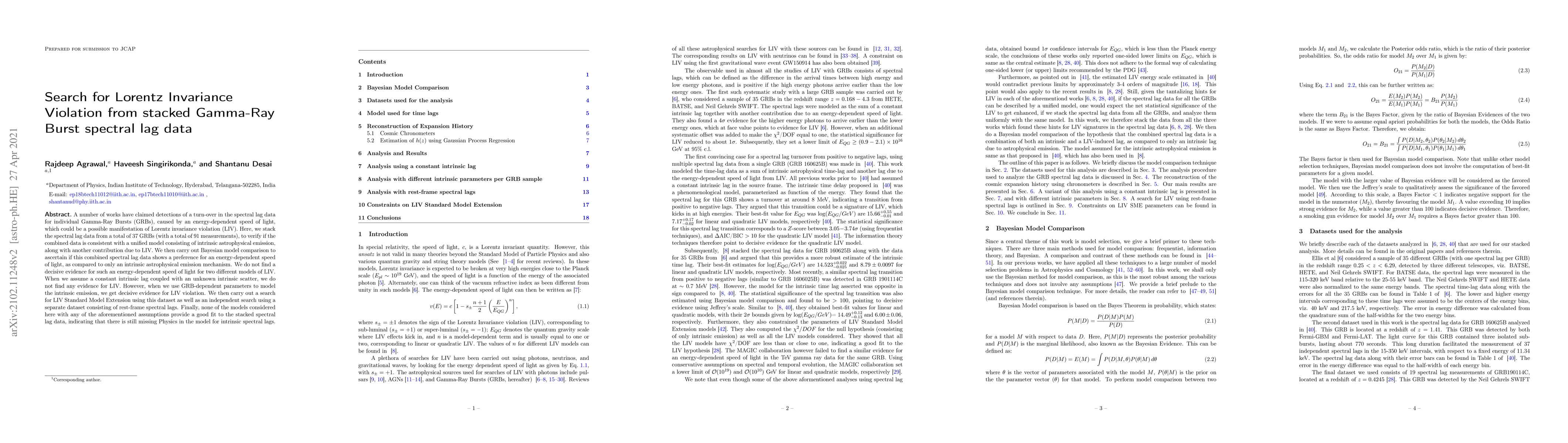 This paper investigates Lorentz invariance violation (LIV) through the spectral lag data of 37 Gamma-Ray Bursts (GRBs). The study finds no decisive evidence for an energy-dependent speed of light under most models, suggesting missing physics in the current intrinsic spectral lag models.