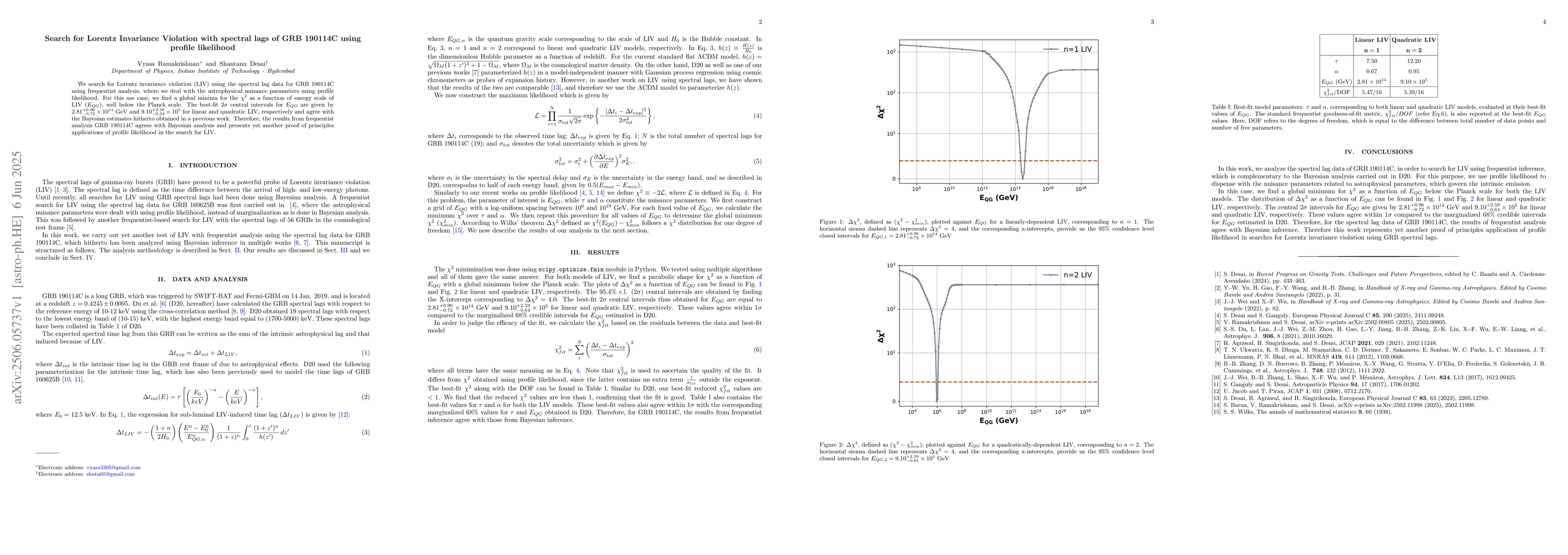 Researchers searched for Lorentz invariance violation using spectral lag data from GRB 190114C and found evidence of LIV at scales below the Planck scale, with best-fit energy ranges indicating a possible presence of QG.
