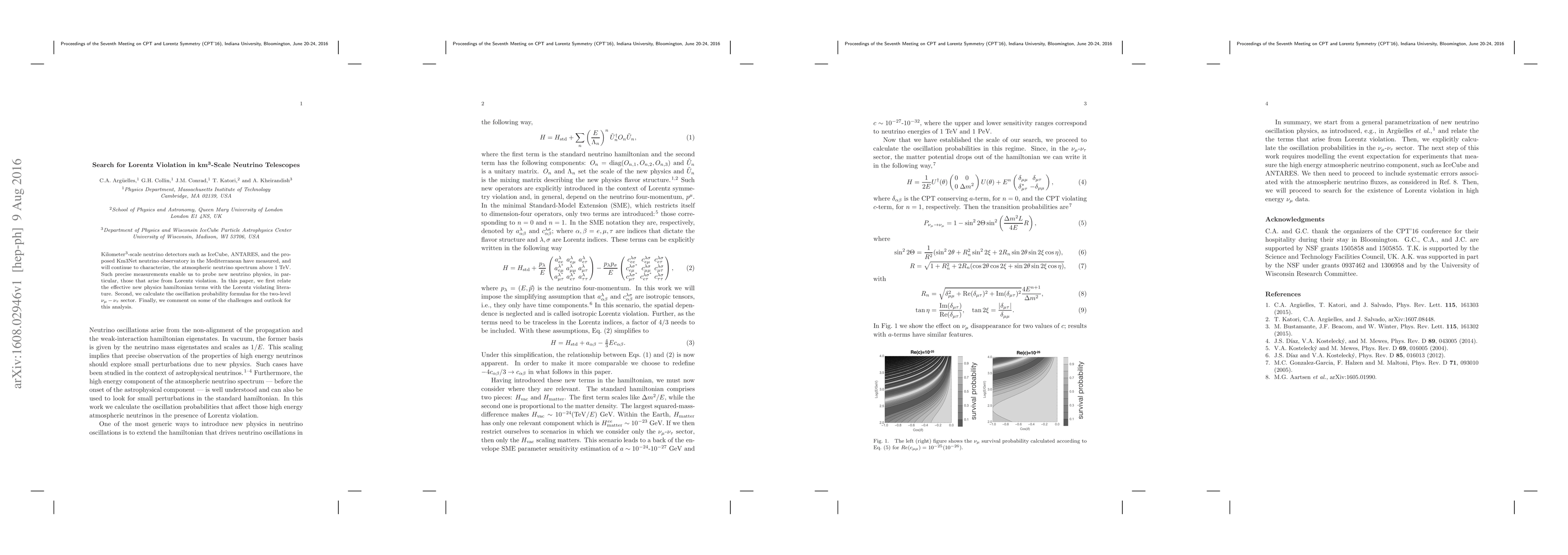 Kilometer$^3$-scale neutrino detectors such as IceCube, ANTARES, and the proposed Km3Net neutrino observatory in the Mediterranean have measured, and will continue to characterize, the atmospheric neutrino spectrum above 1 TeV. Such precise measurements enable us to probe new neutrino physics, in particular, those that arise from Lorentz violation. In this paper, we first relate the effective new physics hamiltonian terms with the Lorentz violating literature. Second, we calculate the oscillation probability formulas for the two-level $\nu_\mu-\nu_\tau$ sector. Finally, we comment on some of the challenges and outlook for this analysis.