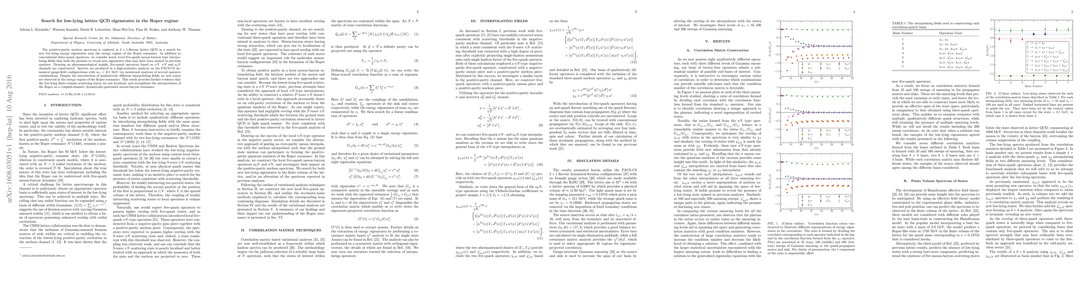 The positive-parity nucleon spectrum is explored in $2 + 1$-flavour lattice QCD in a search for new low-lying energy eigenstates near the energy regime of the Roper resonance. In addition to conventional three-quark operators, we consider novel, local five-quark meson-baryon type interpolating fields that hold the promise to reveal new eigenstates that may have been missed in previous analyses. Drawing on phenomenological insight, five-quark operators based on $\sigma{N}$, $\pi{N}$ and $a_0{N}$ channels are constructed. Spectra are produced in a high-statistics analysis on the PACS-CS dynamical gauge-field configurations with $m_{\pi} = 411\textrm{ MeV}$ via variational analyses of several operator combinations. Despite the introduction of qualitatively different interpolating fields, no new states are observed in the energy regime of the Roper resonance. This result provides further evidence that the low-lying finite-volume scattering states are not localised, and strengthens the interpretation of the Roper as a coupled-channel, dynamically-generated meson-baryon resonance.