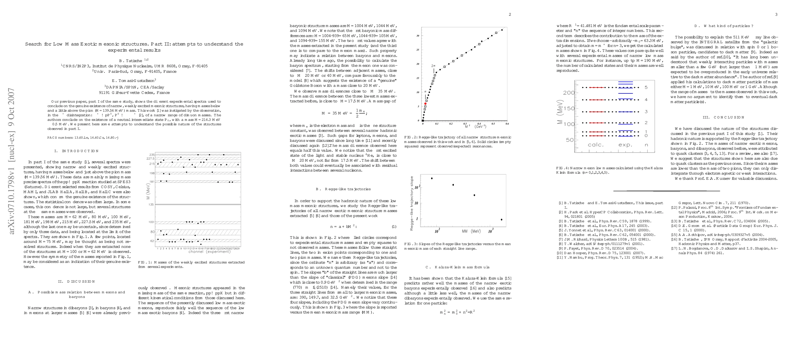 Our previous paper, part I of the same study, shows the different experimental spectra used to conclude on the genuine existence of narrow, weakly excited mesonic structures, having masses below and a little above the pion (M=139.56 MeV) mass. This work \cite{previous} was instigated by the observation, in the $\Sigma^{+}$ disintegration: $\Sigma^{+}\to$pP$^{0}$, P$^{0}\to\mu^{-}\mu^{+}$ \cite{park}, of a narrow range of dimuon masses. The authors conclude on the existence of a neutral intermediate state P$_{0}$, with a mass M=214.3 MeV $\pm$ 0.5 MeV. We present here some attempts to understand the possible nature of the structures observed in part I.