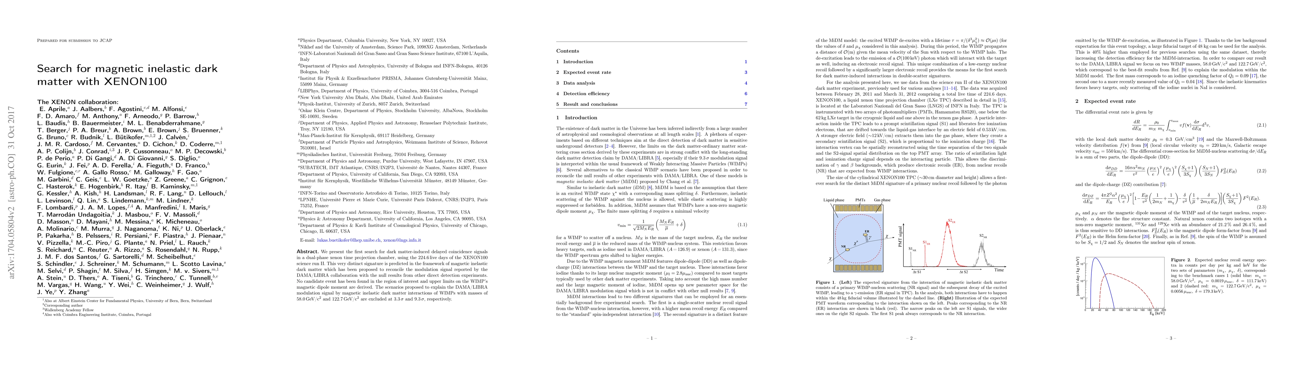 This paper reports the first search for magnetic inelastic dark matter in the XENON100 experiment, finding no candidate events and setting new upper limits on the WIMP's magnetic dipole moment, thereby excluding specific scenarios proposed to explain the DAMA/LIBRA modulation signal.