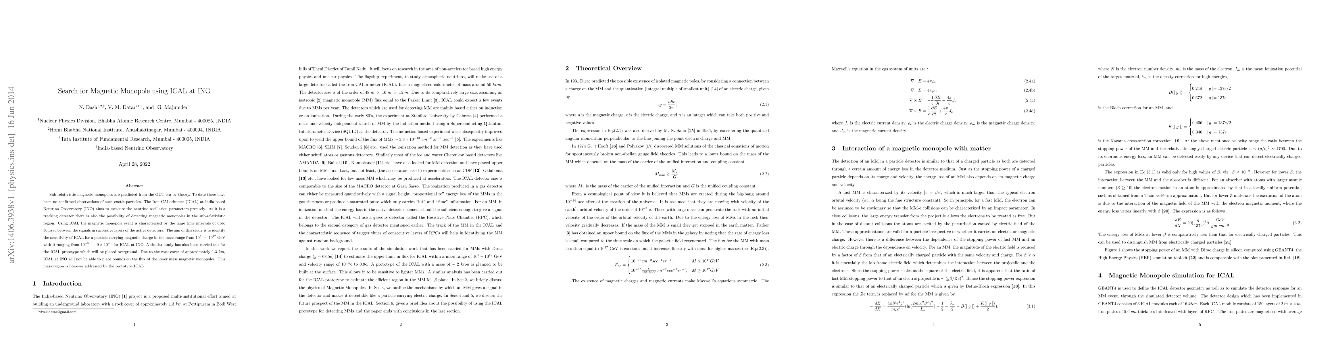 Sub-relativistic magnetic monopoles are predicted from the GUT era by theory. To date there have been no confirmed observations of such exotic particles. The Iron CALorimeter (ICAL) at India-based Neutrino Observatory (INO) aims to measure the neutrino oscillation parameters precisely. As it is a tracking detector there is also the possibility of detecting magnetic monopoles in the sub-relativistic region. Using ICAL the magnetic monopole event is characterised by the large time intervals of upto 30 microsec between the signals in successive layers of the active detectors. The aim of this study is to identify the sensitivity of ICAL for a particle carrying magnetic charge in the mass range from 10^{5} to 10^{17} GeV with beta ranging from 10^{-5} to 9 x 10^{-1} for ICAL at INO. A similar study has also been carried out for the ICAL prototype which will be placed overground. Due to the rock cover of approximately 1.3 km, ICAL at INO will not be able to place bounds on the flux of the lower mass magnetic monopoles. This mass region is however addressed by the prototype ICAL.