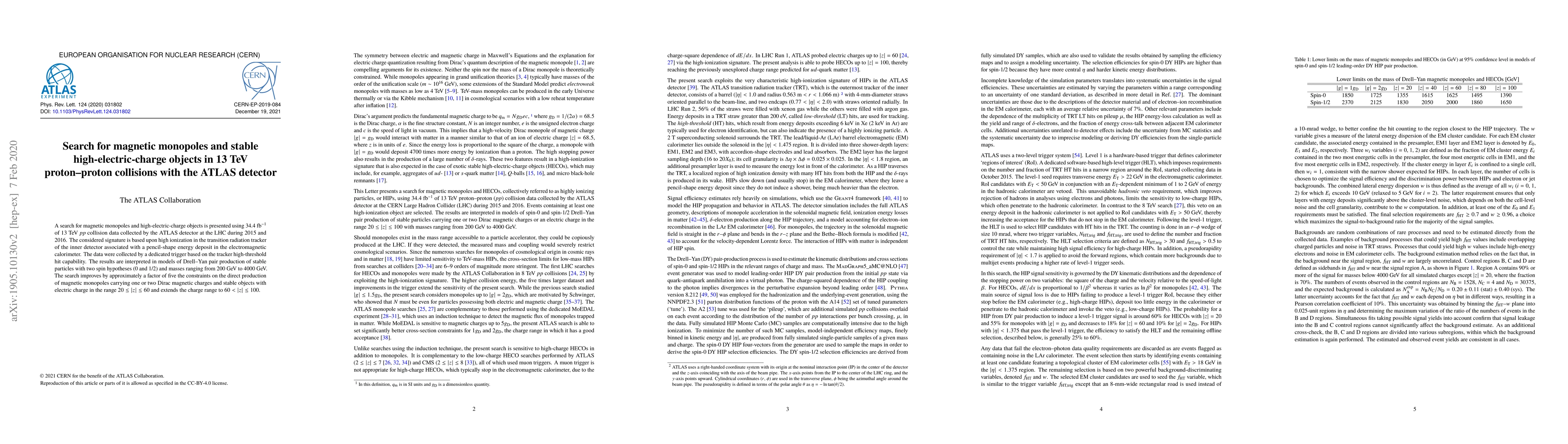 A search for magnetic monopoles and high-electric-charge objects is presented using 34.4 fb$^{-1}$ of 13 TeV $pp$ collision data collected by the ATLAS detector at the LHC during 2015 and 2016. The considered signature is based upon high ionization in the transition radiation tracker of the inner detector associated with a pencil-shape energy deposit in the electromagnetic calorimeter. The data were collected by a dedicated trigger based on the tracker high-threshold hit capability. The results are interpreted in models of Drell-Yan pair production of stable particles with two spin hypotheses (0 and 1/2) and masses ranging from 200 GeV to 4000 GeV. The search improves by approximately a factor of five the constraints on the direct production of magnetic monopoles carrying one or two Dirac magnetic charges and stable objects with electric charge in the range $20\le|z|\le60$ and extends the charge range to $60<|z|\le100$.