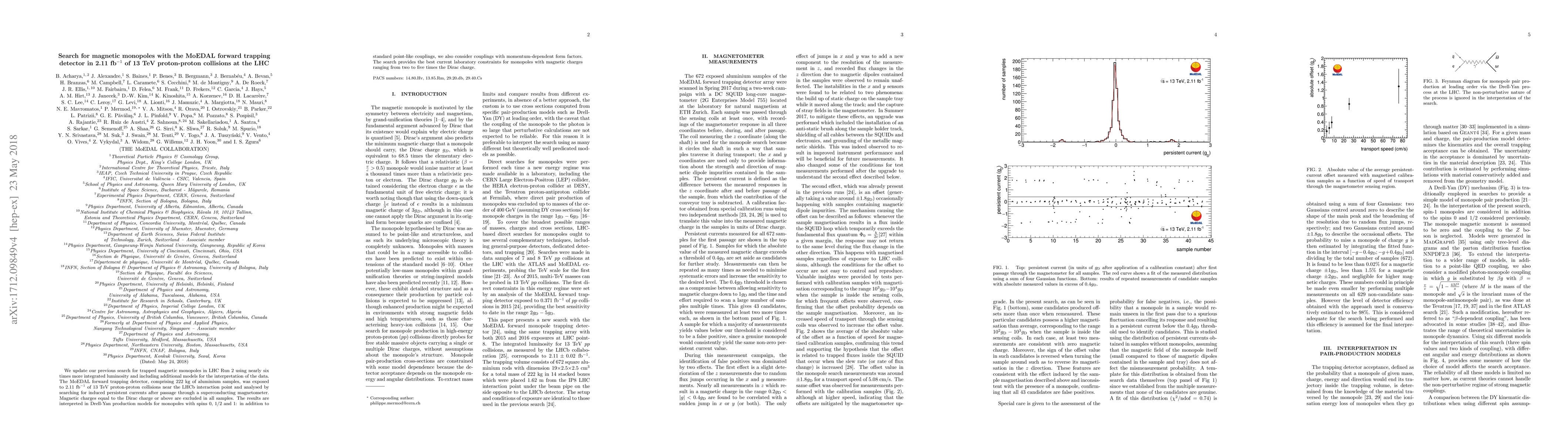 Researchers searched for magnetic monopoles in 2.11 fb$^{-1}$ of LHC collisions, setting the best current laboratory constraints for monopoles with magnetic charges up to five times the Dirac charge.