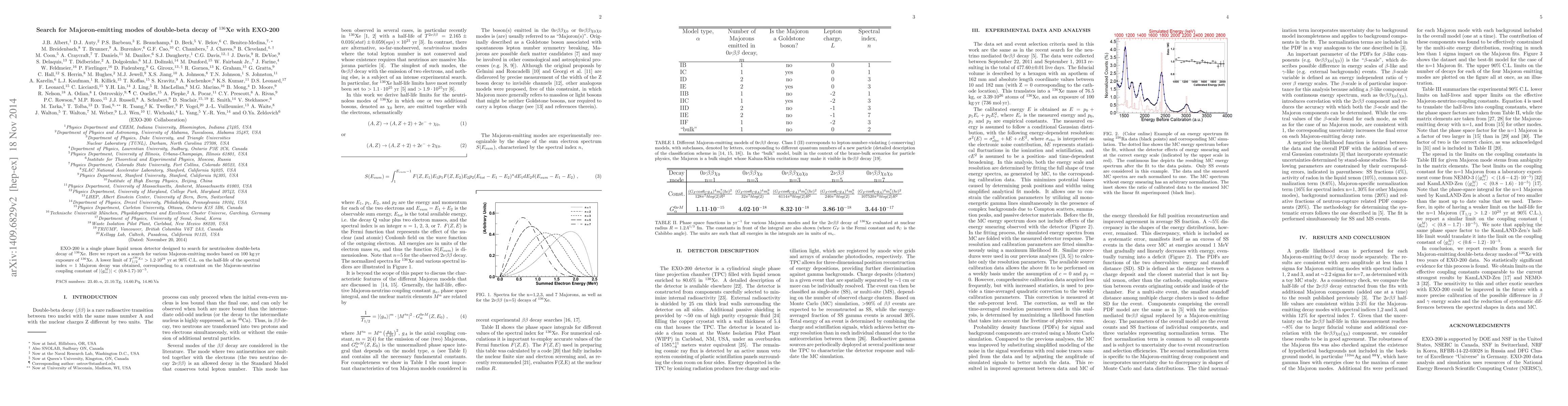 The EXO-200 experiment, a liquid xenon detector, searched for Majoron-emitting double-beta decay modes in $^{136}$Xe using 100 kg$\cdot$yr exposure. A lower limit of $T^{^{136}Xe}_{1/2} >1.2 \cdot 10^{24}$ yr was established for the half-life, constraining the Majoron-neutrino coupling constant.
