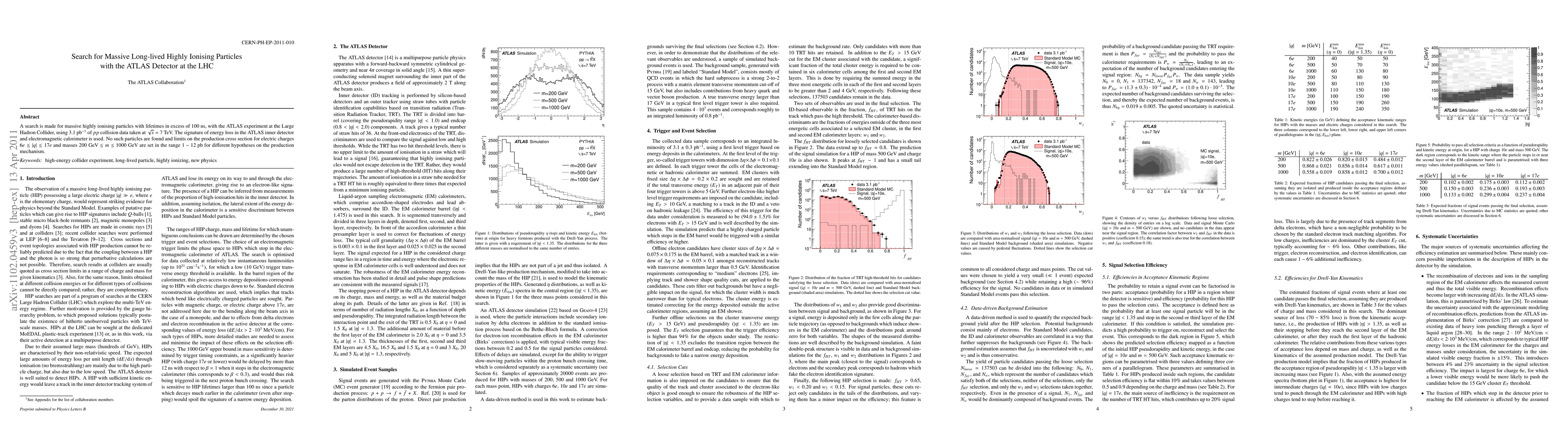 A search is made for massive long-lived highly ionising particles with the ATLAS experiment at the Large Hadron Collider, using 3.1 pb-1 of pp collision data taken at sqrt(s)=7 TeV. The signature of energy loss in the ATLAS inner detector and electromagnetic calorimeter is used. No such particles are found and limits on the production cross section for electric charges 6e <= |q| <= 17e and masses 200 GeV <= m <= 1000 GeV are set in the range 1-12 pb for different hypotheses on the production mechanism.
