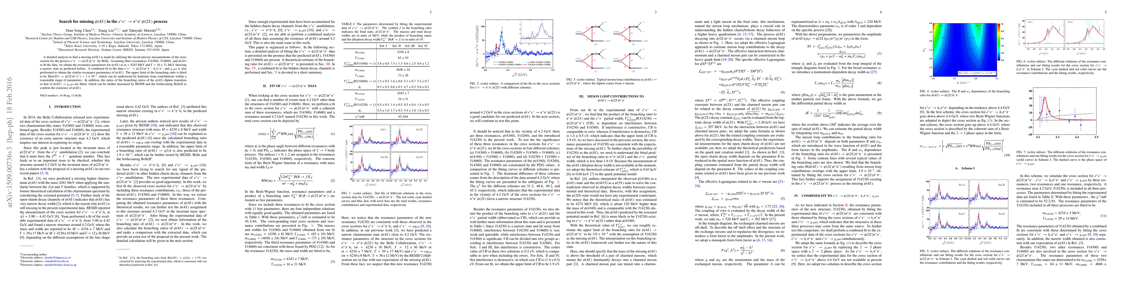 A detailed analysis to find a missing $\psi(4S)$ is made by utilizing the recent precise mesurements of the cross section for the process $e^+e^-\to \psi(2S)\pi^+\pi^-$ by Belle. Assuming three resonances $Y(4360)$, $Y(4660)$, and $\psi(4S)$ to fit the data, we obtain the resonance parameters for $\psi(4S)$ as $m=4243$ MeV and $\Gamma=16 \pm 31$ MeV showing a narrow state as predicted before. A combined fit to the data $e^+ e^- \to \psi(2S) \pi^+ \pi^-, \ h_c \pi^+ \pi^-$, and $\chi_{c0} \omega$ is also performed to obtain the similar resonance parameters of $\psi(4S)$. The upper limit of the branching ratio is fitted to be $\mathcal{B}(\psi(4S)\to\psi(2S)\pi^+\pi^-) < 3\times 10^{-3}$, which can be understood by hadronic loop contributions in reasonable parameters range. In addition, the ratios of the branching ratios of the $\psi(4S)$ dipion transition to the one of $\psi(4S)\to\chi_{c0}\omega$ are fitted, which can be further measured by BESIII and forthcoming BelleII to confirm the existence of $\psi(4S)$.