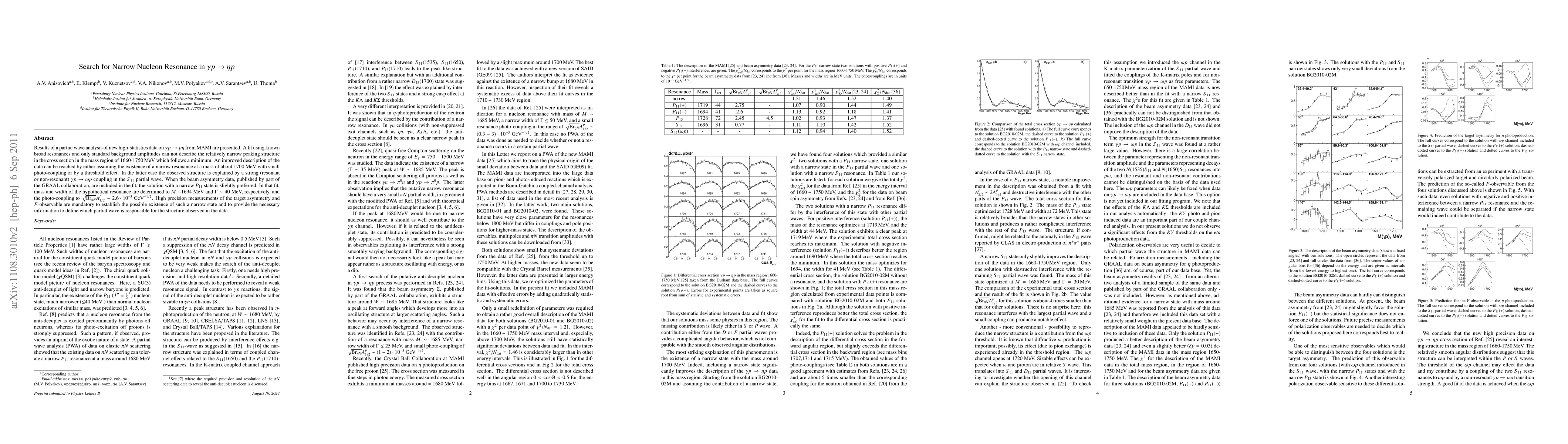 Results of a partial wave analysis of new high-statistics data on $\gamma p\to p\eta$ from MAMI are presented. A fit using known broad resonances and only standard background amplitudes can not describe the relatively narrow peaking structure in the cross section in the mass region of 1660-1750 MeV which follows a minimum. An improved description of the data can be reached by either assuming the existence of a narrow resonance at a mass of about 1700 MeV with small photo-coupling or by a threshold effect. In the latter case the observed structure is explained by a strong (resonant or non-resonant) $\gamma p\to\omega p$ coupling in the $S_{11}$ partial wave. When the beam asymmetry data, published by part of the GRAAL collaboration, are included in the fit, the solution with a narrow $P_{11}$ state is slightly preferred. In that fit, mass and width of the hypothetical resonance are determined to $M\sim$1694 MeV and $\Gamma\sim 40$ MeV, respectively, and the photo-coupling to $\sqrt{{\rm Br}_{\eta N}} A_{1/2}^p \sim 2.6\cdot 10^{-3}$ GeV$^{-1/2}$. High precision measurements of the target asymmetry and $F$-observable are mandatory to establish the possible existence of such a narrow state and to provide the necessary information to define which partial wave is responsible for the structure observed in the data.