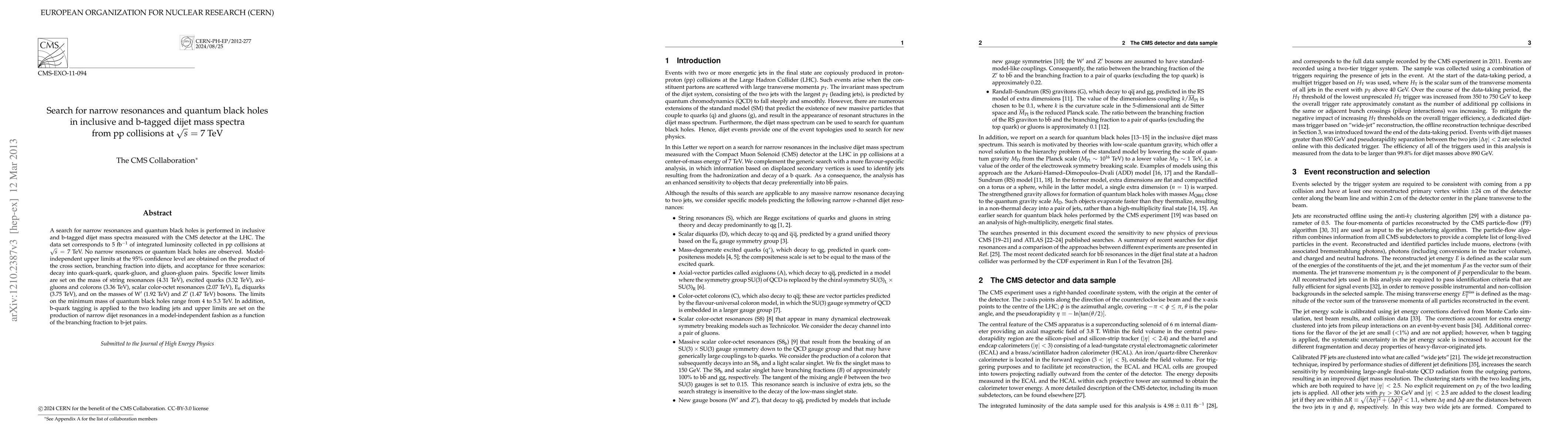 This paper reports a search for narrow resonances and quantum black holes in dijet mass spectra from pp collisions at 7 TeV using the CMS detector at the LHC. No evidence of such particles is found, leading to model-independent upper limits on their production cross-sections and specific lower limits on the masses of various hypothetical particles.