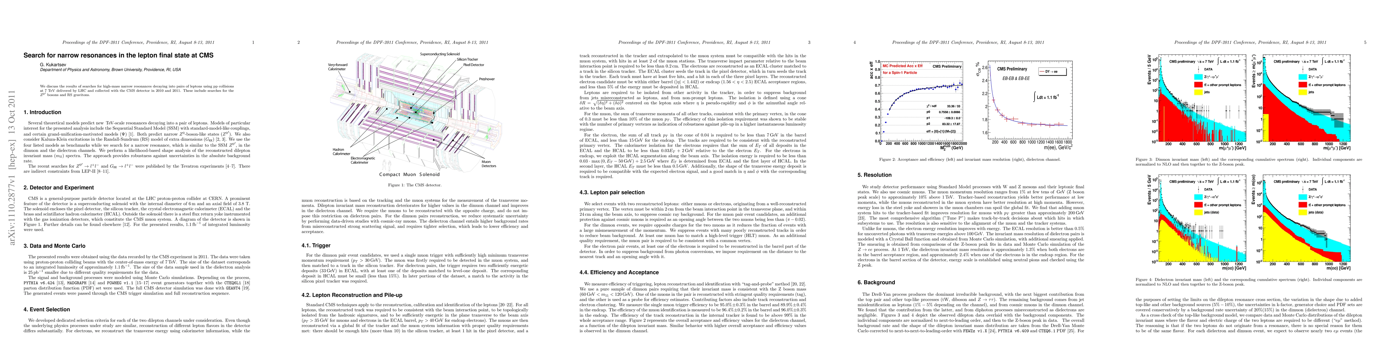 This paper reports on searches for high-mass narrow resonances, including Z' bosons and RS gravitons, decaying into pairs of leptons in proton-proton collisions at 7 TeV using the CMS detector at the LHC during 2010-2011. No significant deviations from the Standard Model were observed.
