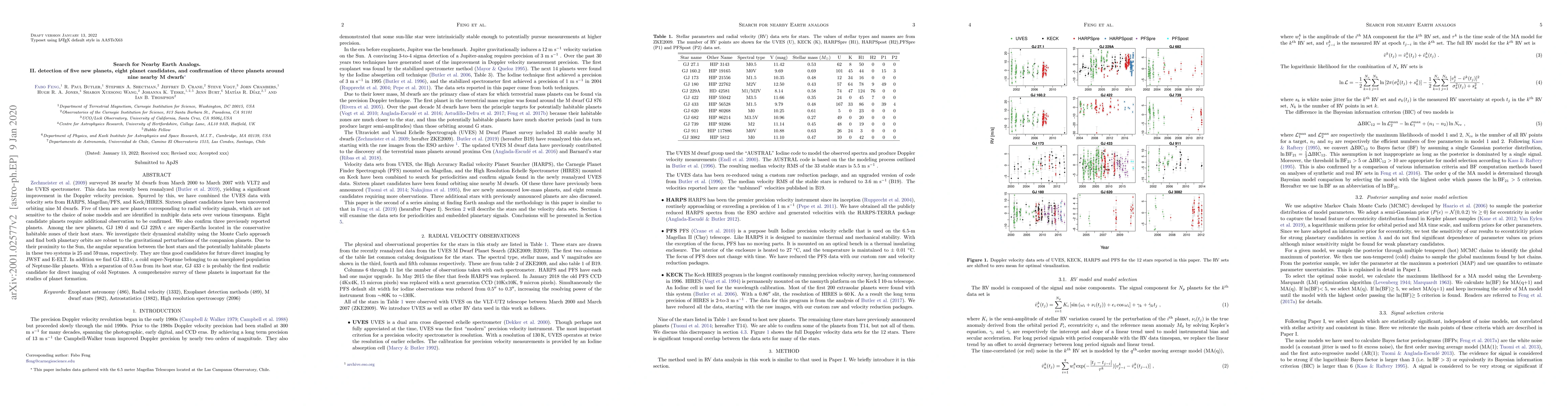 Zechmeister et al. (2009) reanalyzed data from 38 nearby M dwarfs, discovering five new planets and confirming three previously reported ones. Among the new planets, GJ 180 d and GJ 229A c are super-Earths in their stars' habitable zones, while GJ 433 c is a cold super-Neptune, all promising targets for future direct imaging studies.