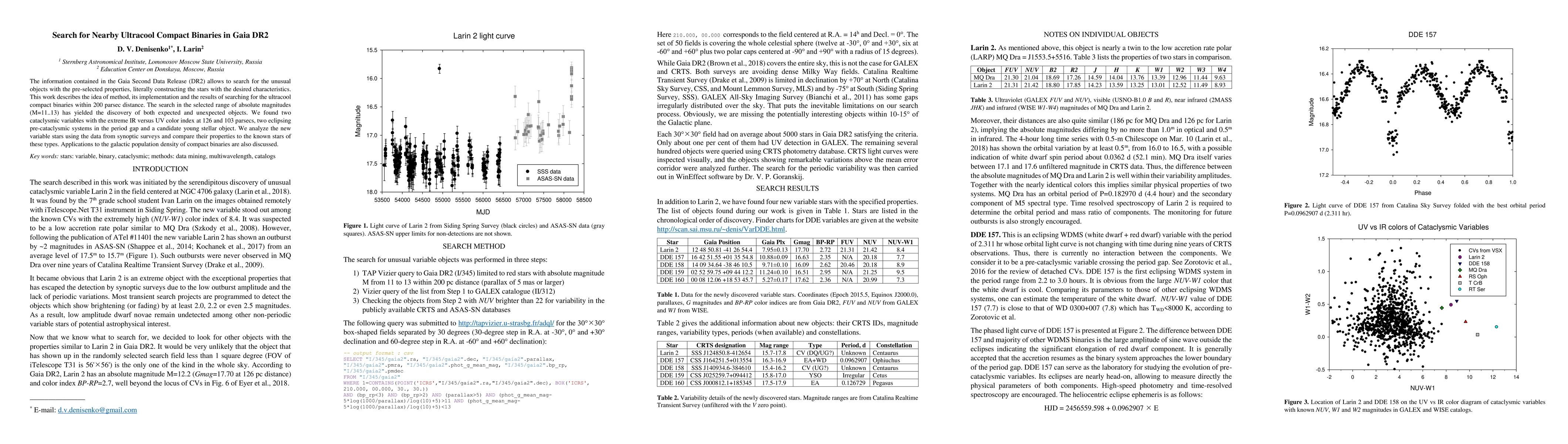 The information contained in the Gaia Second Data Release (DR2) allows to search for the unusual objects with the pre-selected properties, literally constructing the stars with the desired characteristics. This work describes the idea of method, its implementation and the results of searching for the ultracool compact binaries within 200 parsec distance. The search in the selected range of absolute magnitudes (M=11..13) has yielded the discovery of both expected and unexpected objects. We found two cataclysmic variables with the extreme IR versus UV color index at 126 and 103 parsecs, two eclipsing pre-cataclysmic systems in the period gap and a candidate young stellar object. We analyze the new variable stars using the data from synoptic surveys and compare their properties to the known stars of these types. Applications to the galactic population density of compact binaries are also discussed.
