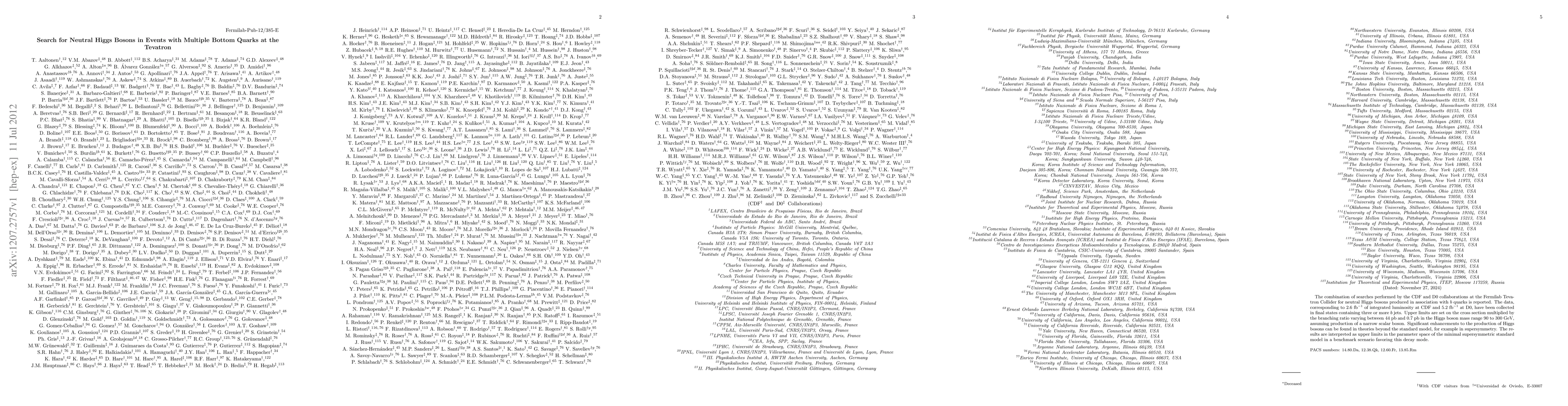This paper combines CDF and D0 searches for neutral Higgs bosons produced with b quarks at the Tevatron, analyzing data from 2.6 fb-1 and 5.2 fb-1 of integrated luminosity. It sets upper limits on the cross section for Higgs bosons in the mass range 90 to 300 GeV, and interprets results in the context of minimal supersymmetric standard model scenarios.